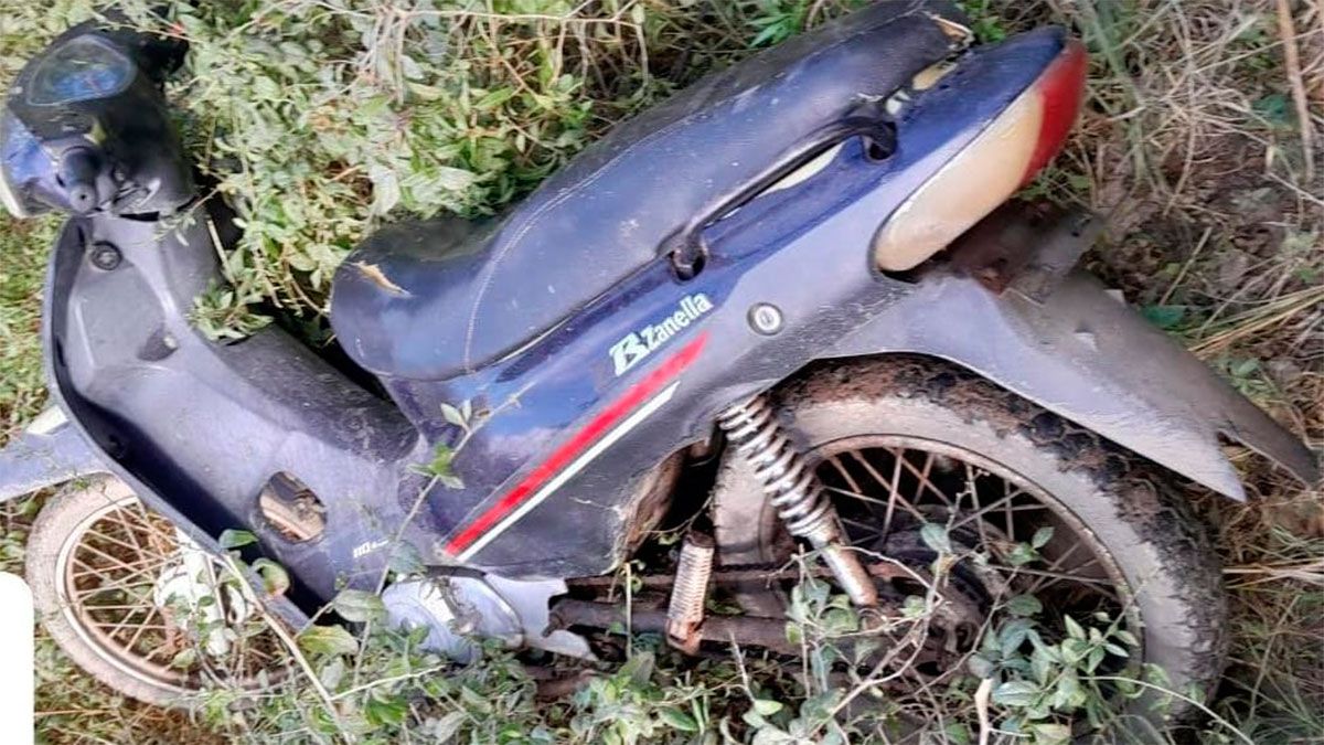 De inmediato los efectivos concurrieron al lugar observando un motovehículo, que se encontraba tirado entre los matorrales, siendo una moto marca Zanella, modelo ZB, 110 cc, color azul, sin dominio colocado .