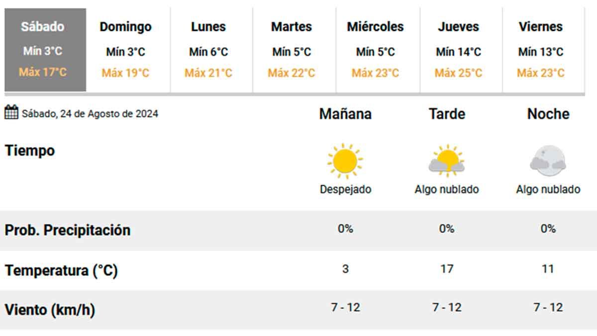 De acuerdo a lo informado por el Servicio Meteorológico Nacional (SMN) en su página web,el sol dirá presente desde las primeras horas de la mañana y templará una jornada con una máxima de 17 grados.