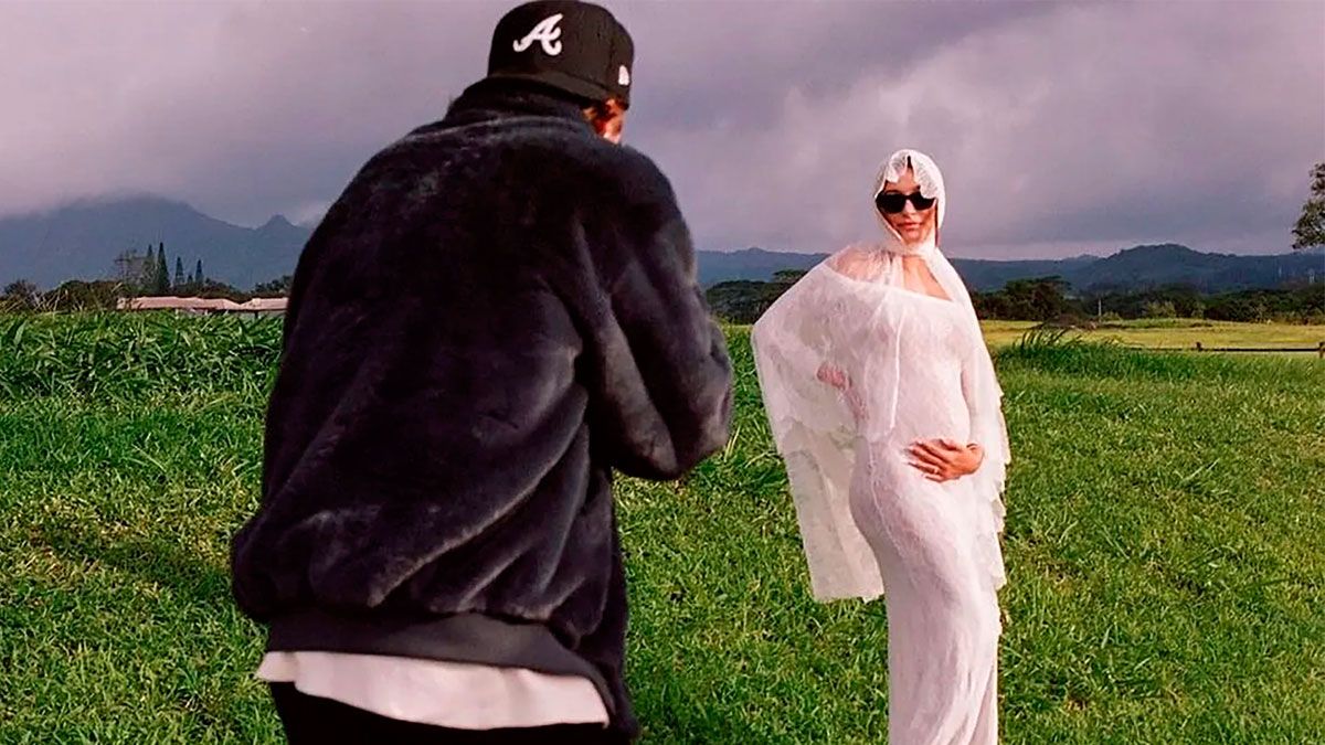 En las imágenes, se podía ver a Justin abrazando a Hailey por detrás, con las manos colocadas cariñosamente sobre su vientre, mientras ambos mostraban orgullosos sus anillos de boda.