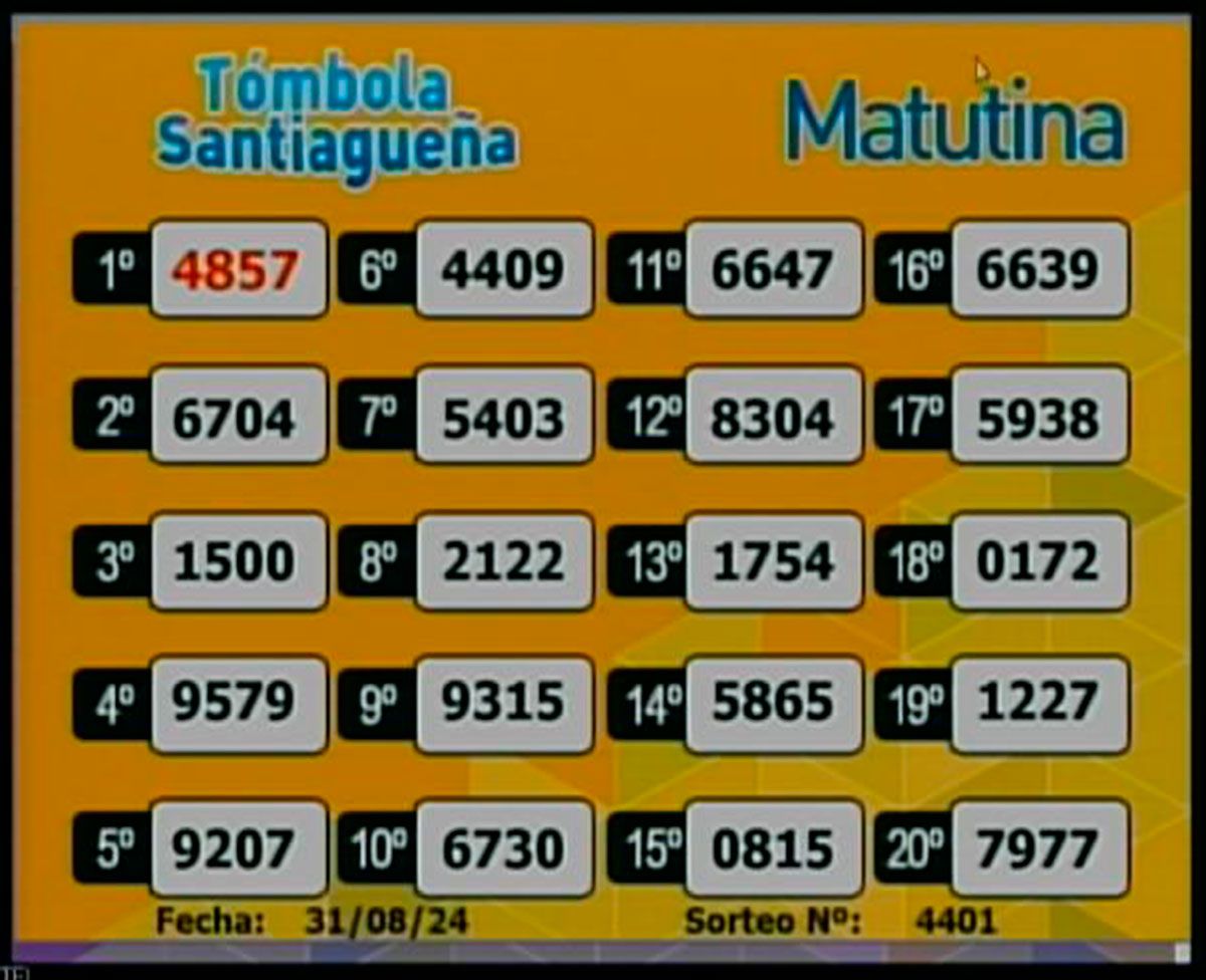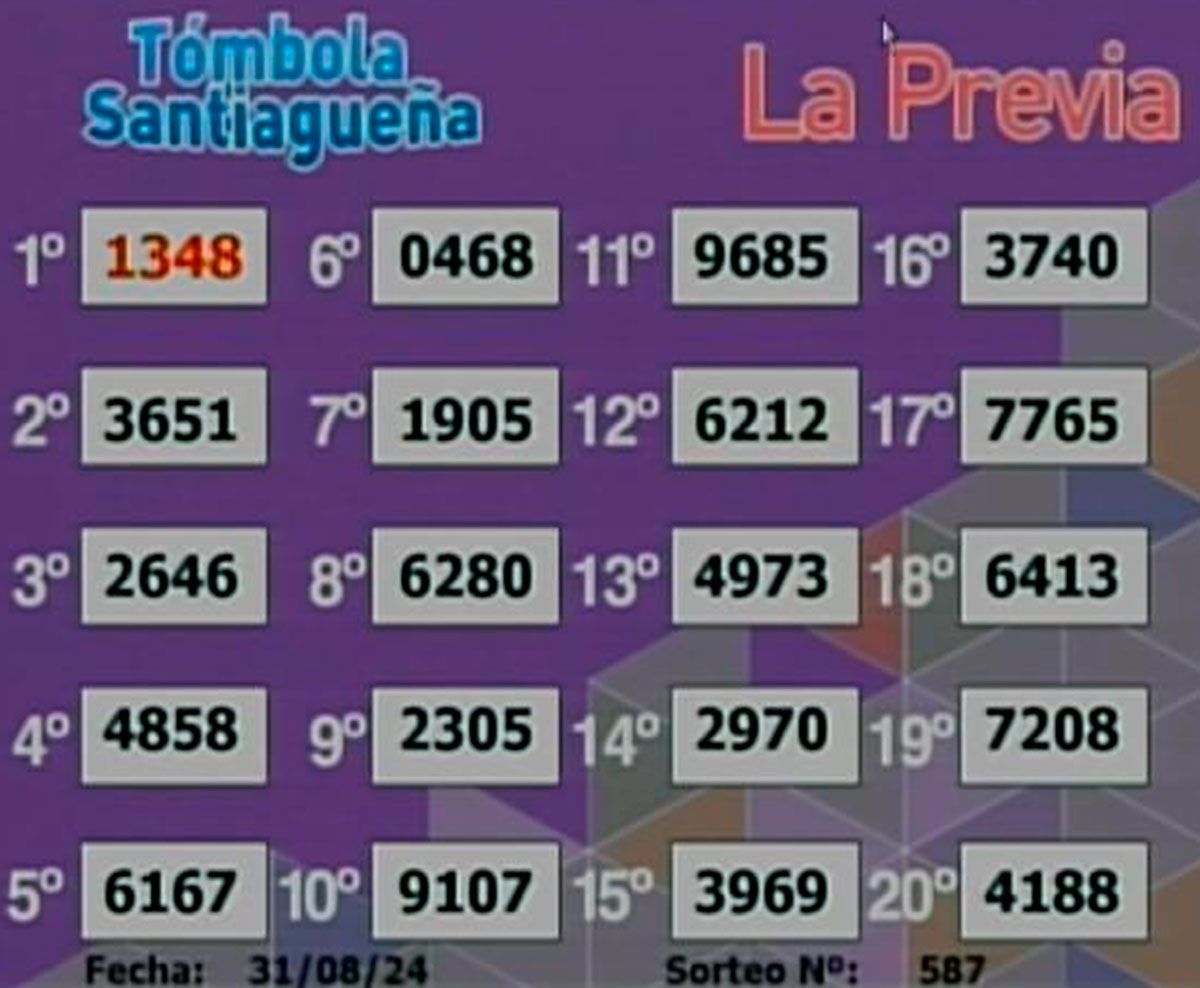 Este sábado 31 de agosto del 2024, como todos los días, se llevó a cabo un nuevo sorteo de la Tómbola Santiagueña.
