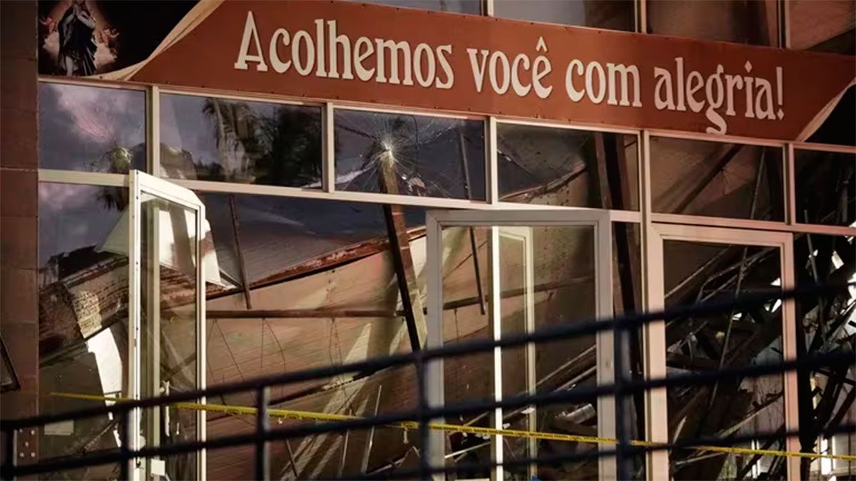 El accidente, que conmocionó a la comunidad local, dejó como víctimas mortales a un hombre de 54 años y a una mujer de 68, según confirmaron las autoridades brasileñas. El techo metálico de la iglesia, que sostenía paneles solares recién instalados, colapsó casi por completo, dejando en pie únicamente las cuatro paredes del edificio.
