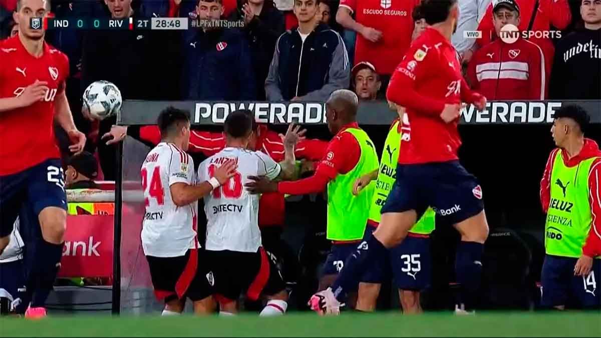 El partido fue trabado y sin muchas acciones de peligro. A los 28 minutos del segundo tiempo, la desesperación de River por conseguir los tres puntos se reflejó en una jugada polémica que involucró a Miguel Borja y el banco de Independiente.