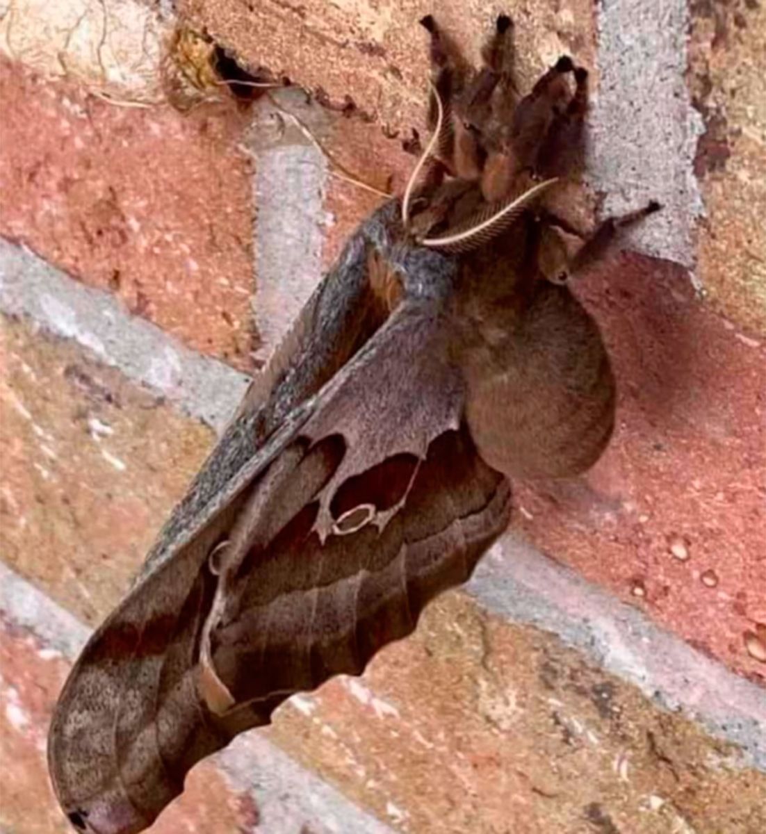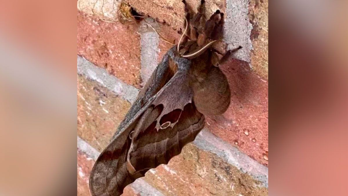 Aunque se parece a una araña gigante, se trata de una polilla grande de nombre científico Antheraea polyphemus.