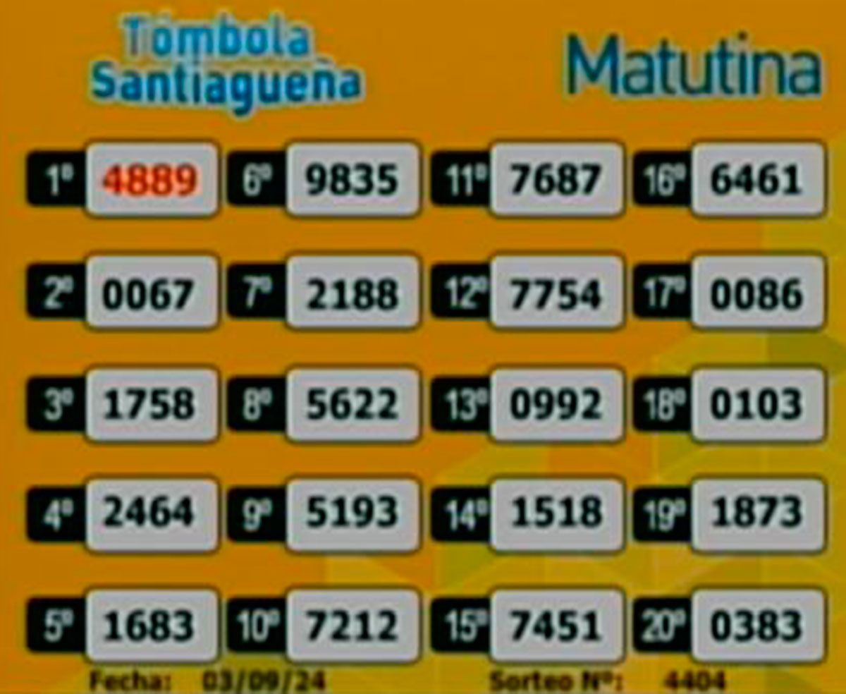 Este martes 3 de septiembre del 2024, como todos los días, se llevó a cabo un nuevo sorteo de la Tómbola Santiagueña.