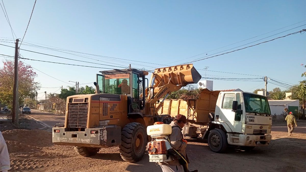 Este jueves en horas de la mañana, el municipio de la ciudad de Fernández, desplegó maquinarias y personal para ejecutar un nuevo operativo de descacharreo en el barrio Los Pinos y sectores comprendidos entre las calles Almirante Brown, Namuncurá, Avenida del Agro y calle Mons. Gerardo Sueldo.