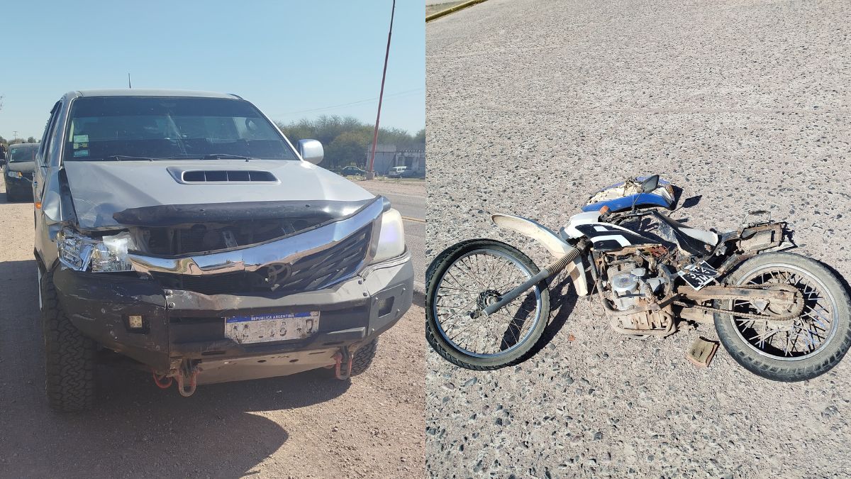 Allí una camioneta Toyota Hilux, que provenía de ciudad Capital con destino al Paraje Canal Melero, conducida por Santillan de 33 años embistió a un Motomel Skua 150 c.c., en la que se trasladaba Quinteros de 46 años, domiciliado en el barrio Tala Pozo de Herrera.