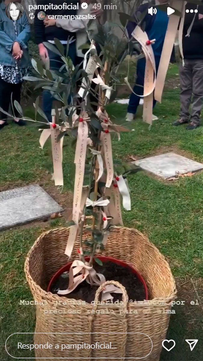 Además, Pampita mostró un presente muy especial que recibió para recordar de Blanquita. “Muchas gracias querida Carmen Paz por el precioso regalo para el alma”, expuso junto a una imagen donde se puede ver una planta en la que cuelgan papeles que tienen escritos buenos deseos.