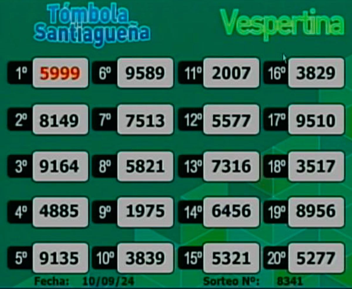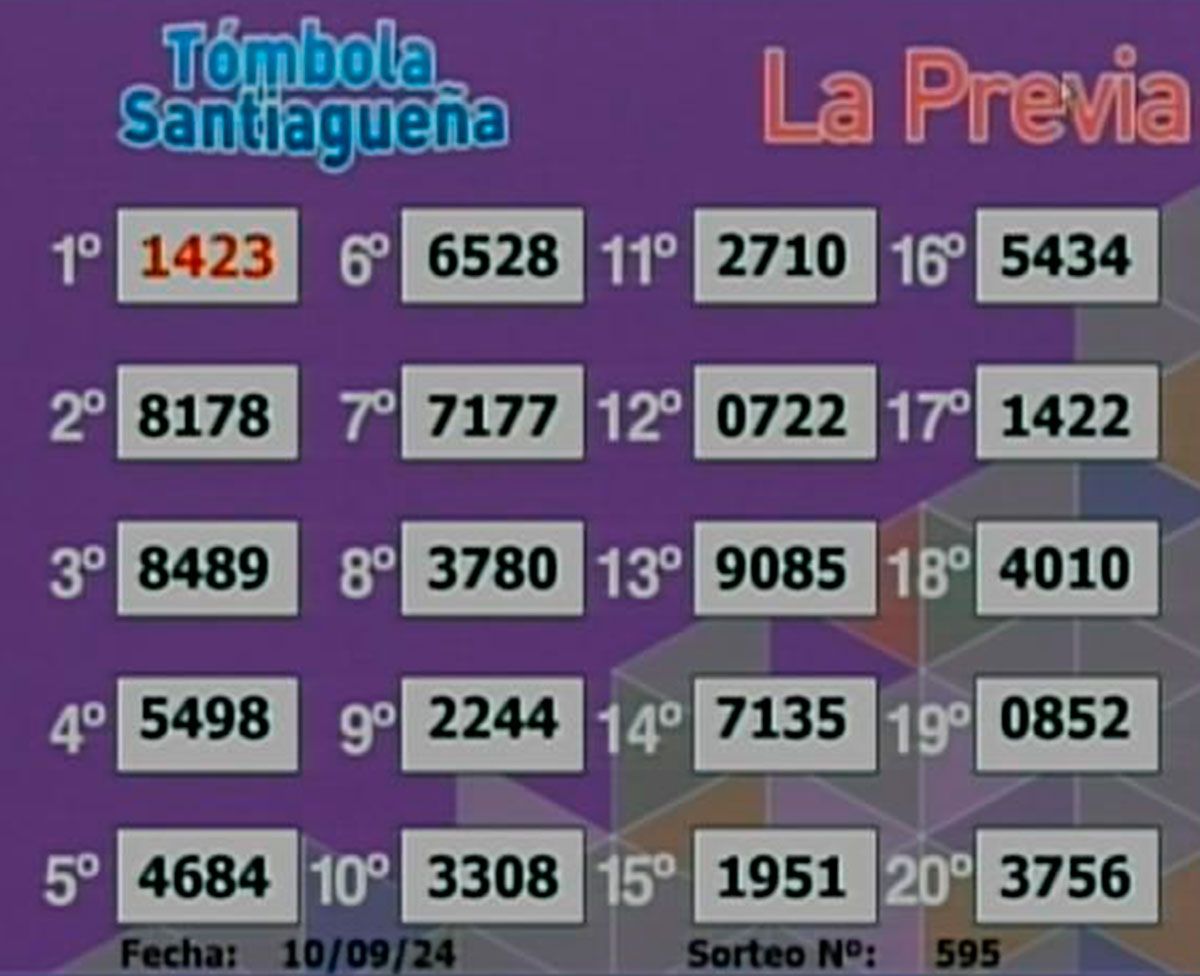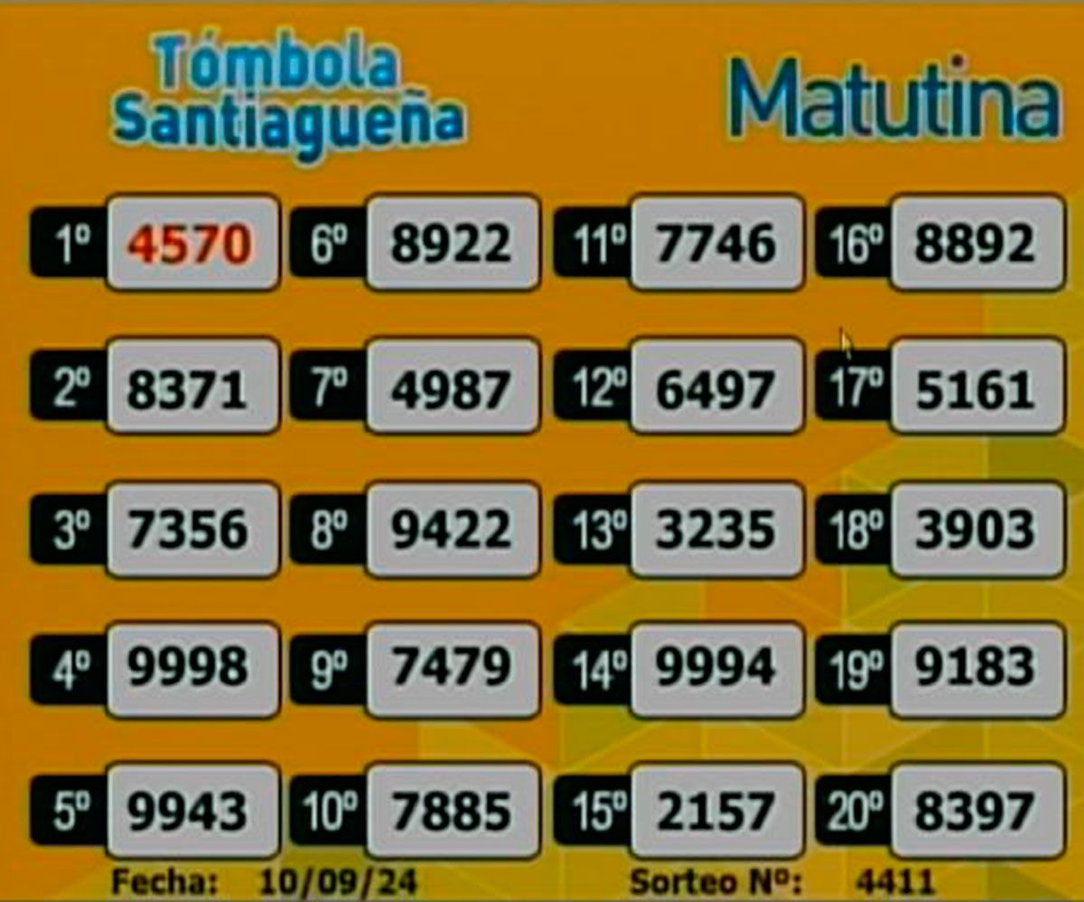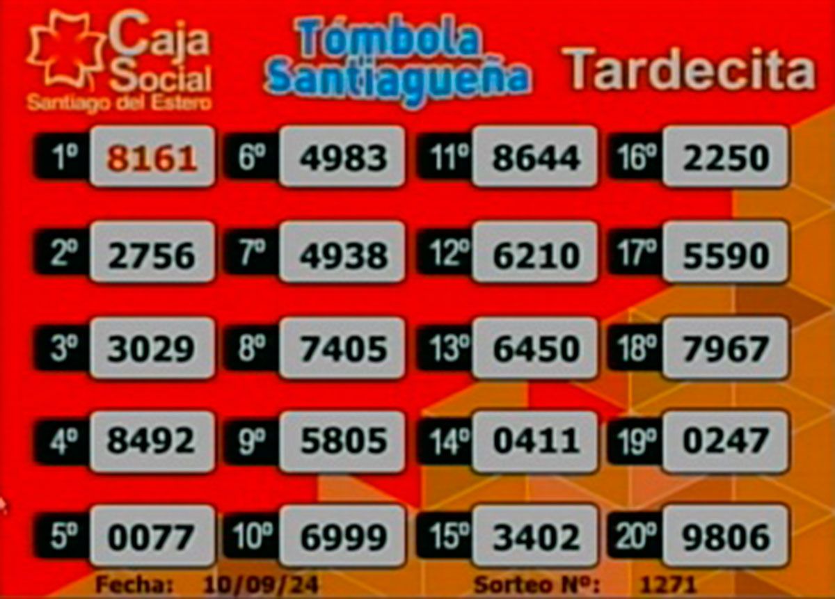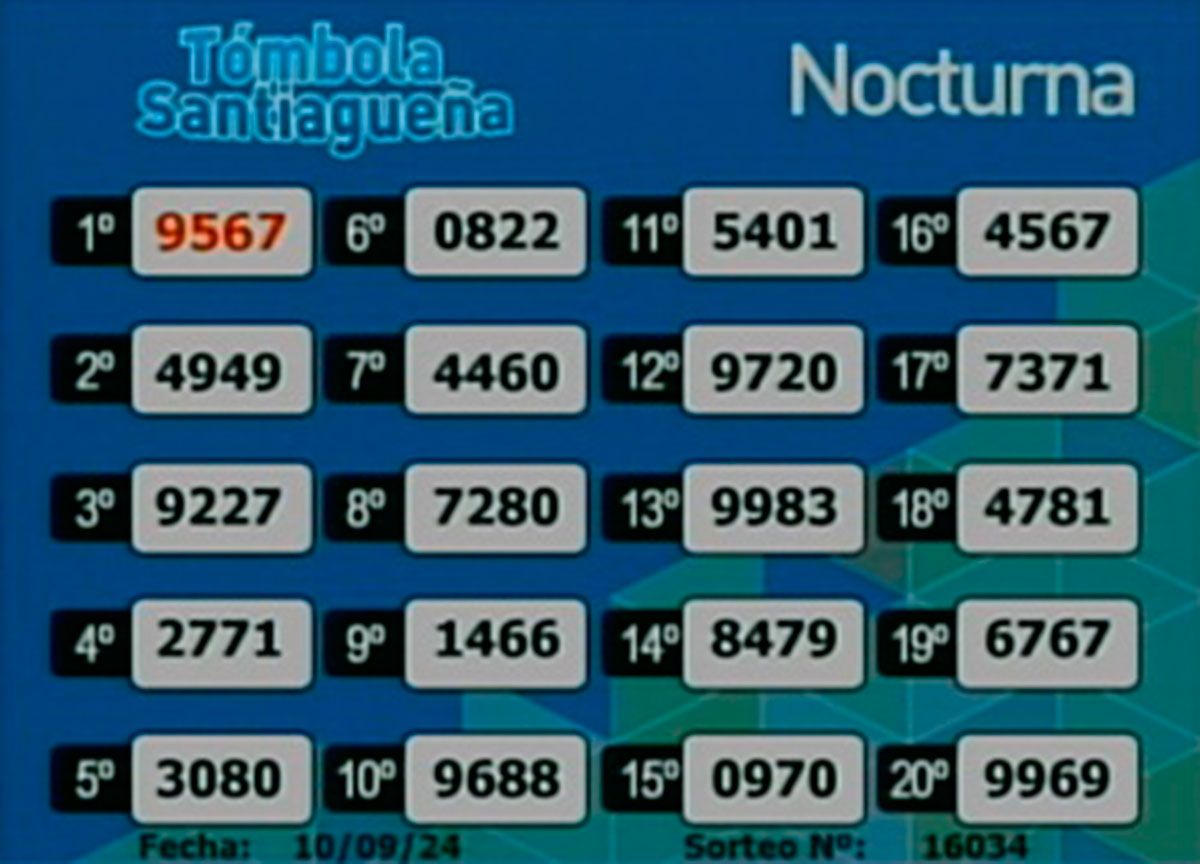 Este martes 10 de septiembre del 2024, como todos los días, se llevó a cabo un nuevo sorteo de la Tómbola Santiagueña.
