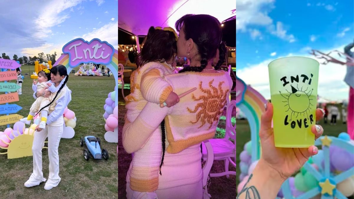 En las fotos del cumpleaños se pudo ver a la cantante Julieta Emilia Cazzuchelli vistiendo colores pasteles al igual que la niña y con una imponente decoración en un parque: un arco que llevaba el nombre de Inti y carteles que señalaban las distintas actividades y servicios que ofrecía el festejo.
