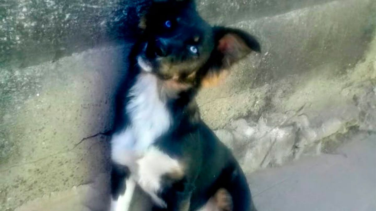 Marcial, un perrito mestizo de tamaño mediano que se perdió recientemente en la calle Bolivia y Canal del barrio Juan Felipe Ibarra. Marcial es fácilmente reconocible por sus ojos celestes.
