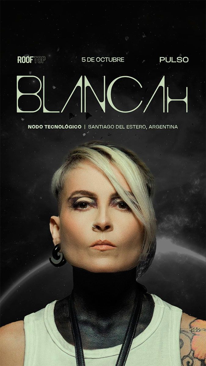 Una de las productoras de eventos más grande del Norte argentino, Pulso Experiencies junto a la fiesta electrónica Rooftop programan para el día sábado 5 de octubre una fecha inolvidable en el Nodo Tecnológico con un armado deslumbrante. Donde la reconocida DJ internacional BLANCAH será la artista principal de la noche junto a los DJs Luciano Ontivero (Córdoba), Lucas Carrizo y Maxi Medina (Santiago del Estero).