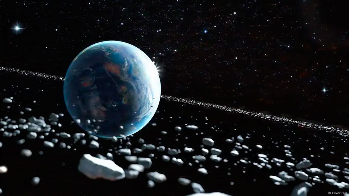 La hipótesis es que la Tierra capturó un asteroide que pasó demasiado cerca y fue despedazado por las fuerzas de marea, formando un anillo de escombros alrededor del planeta.