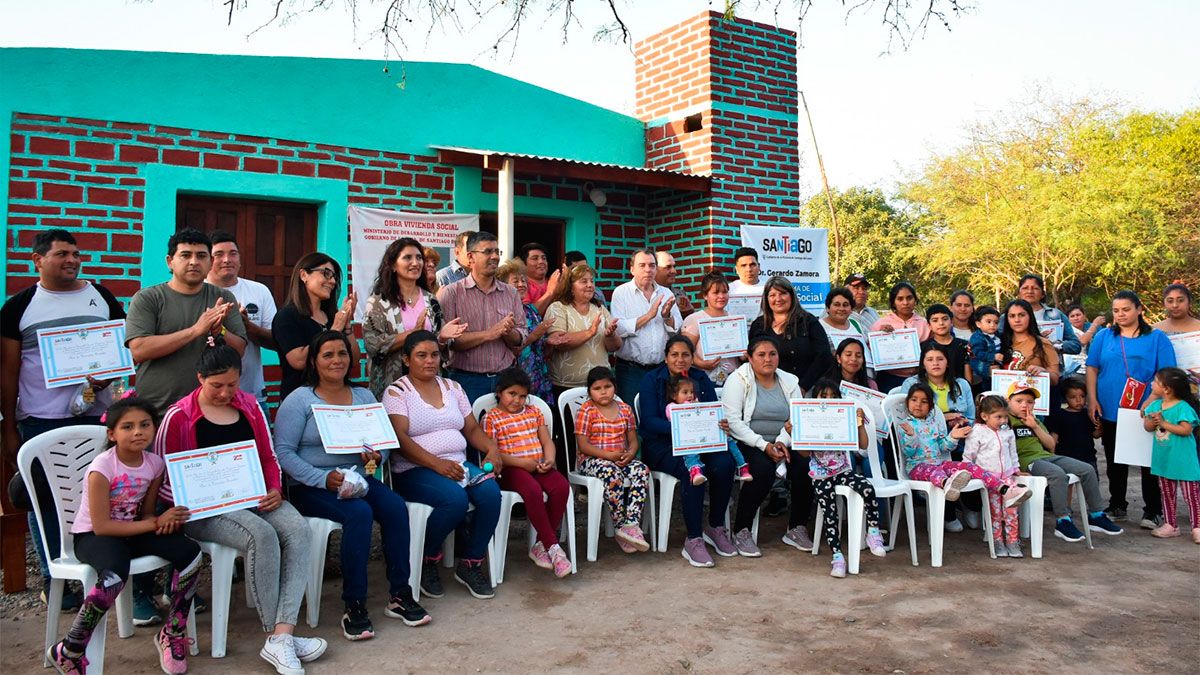 Encabezado por el ministro de Desarrollo Social, Ángel Niccolai, junto con la comisionada municipal de Cañada Escobar, Stella Gerez, se realizó este miércoles por la tarde en esta localidad del departamento Banda la entrega formal de 37 viviendas sociales a familias de la zona, las que se suman a más de 30 mil que ya fueron beneficiadas por este programa en todo el territorio provincial.