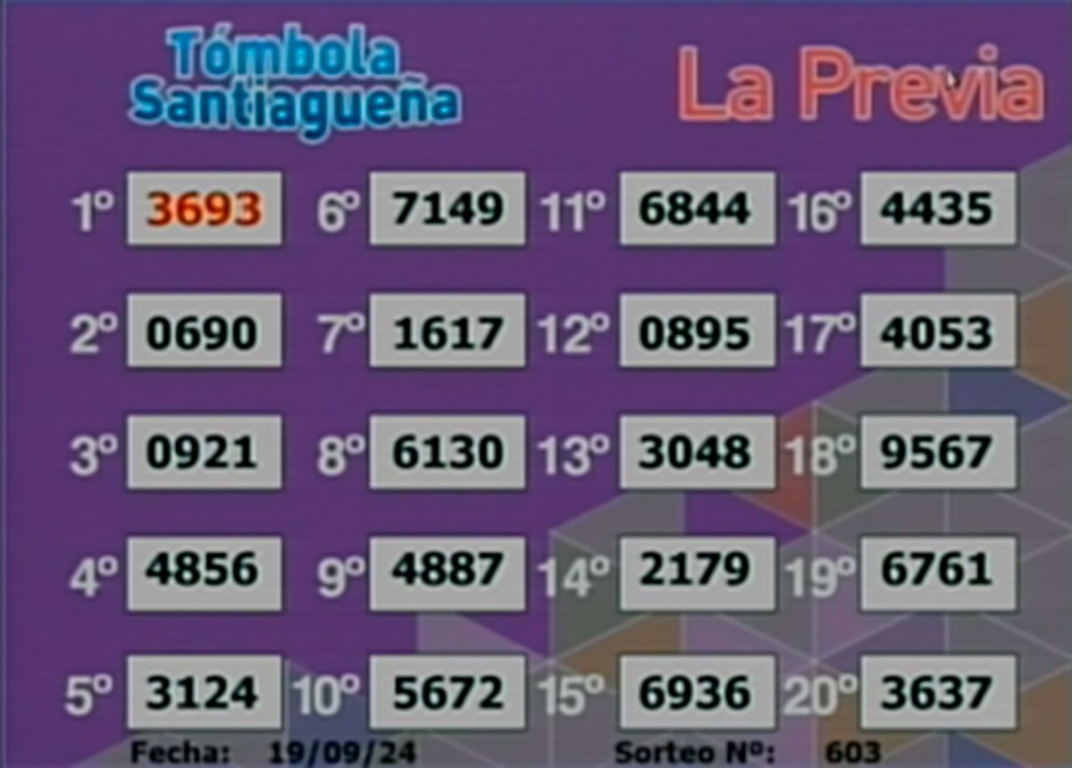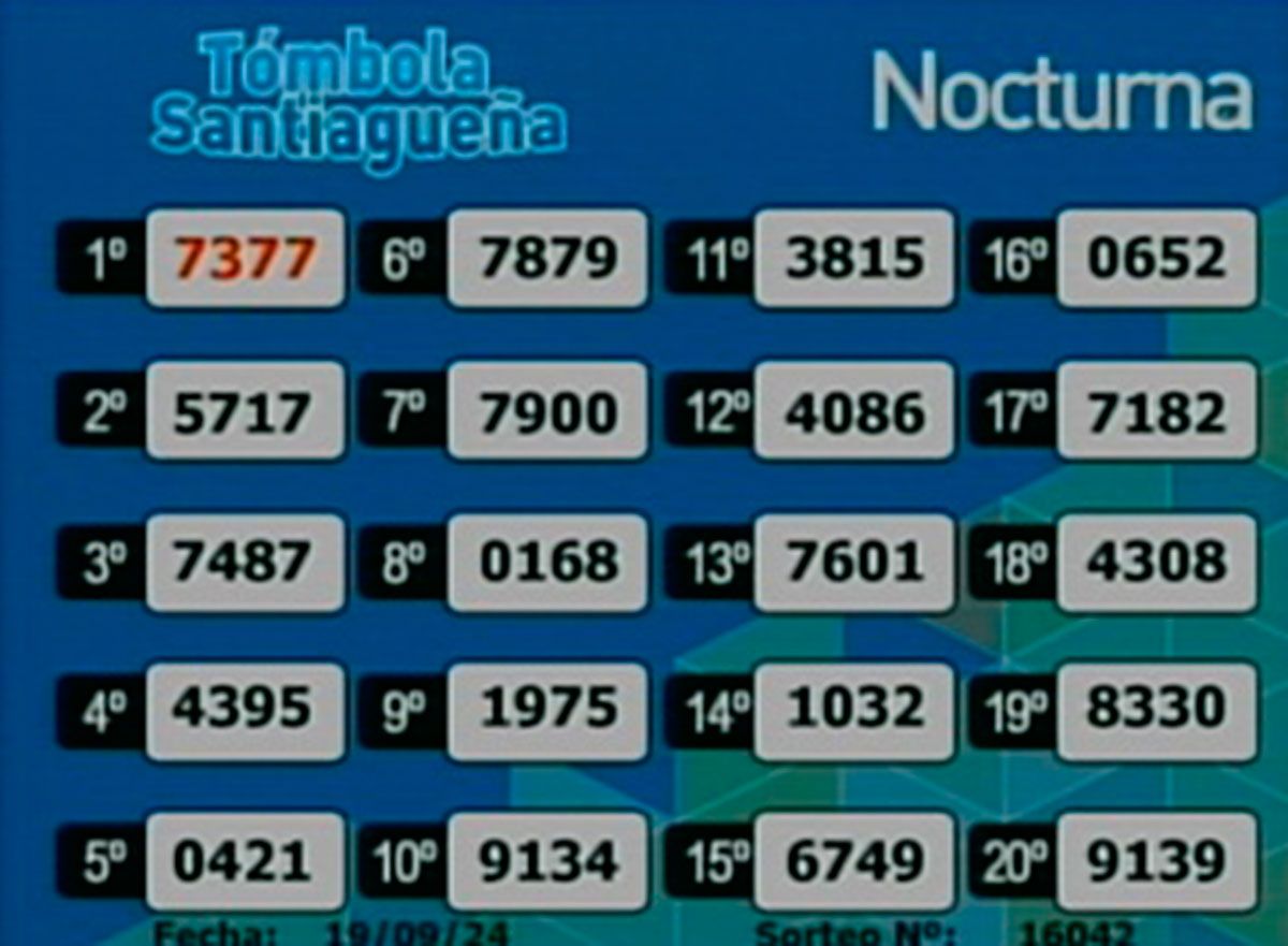 Este jueves 19 de septiembre del 2024, como todos los días, se llevó a cabo un nuevo sorteo de la Tómbola Santiagueña.