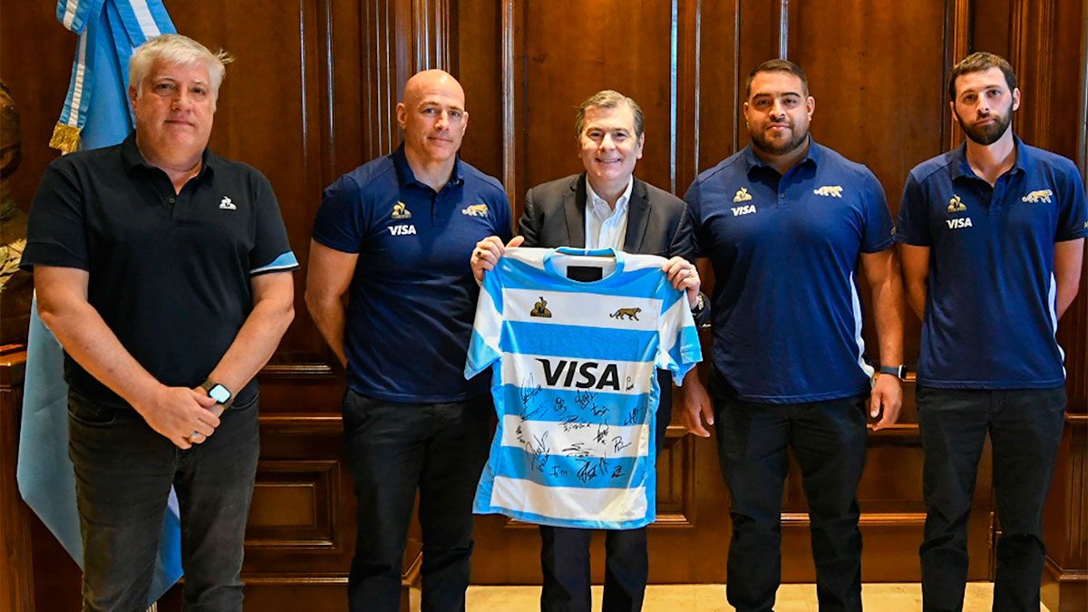 El gobernador Gerardo Zamora recibió este jueves por la mañana en Casa de Gobierno la visita de Felipe Contepomi, técnico del Seleccionado Argentino de Rugby “Los Pumas”, quien estuvo acompañado por el manager del equipo, Juan Passano; el gerente comercial de la Unión Argentina de Rugby, Miguel Dupont, y el jugador santiagueño Pedro Delgado.