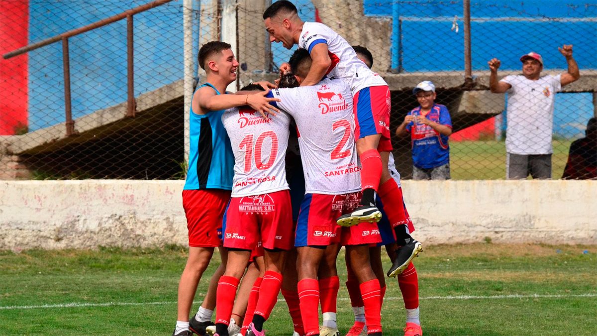 El pitazo final desató la fiesta en La Isla del pueblo azulgrana que se ilusiona cada vez más con seguir en la segunda categoría del fútbol argentino.