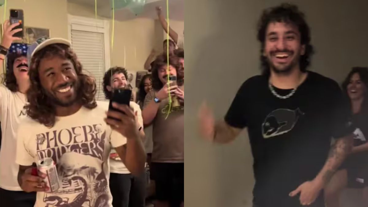 El protagonista del video, conocido en TikTok como @brucelee977, fue sorprendido por sus amigos, quienes no solo organizaron la fiesta, sino que también se disfrazaron de él. Cada uno llevaba una peluca que imitaba su cabellera y un bigote italiano característico, lo que generó una reacción masiva en la plataforma. También, hubo papel picado y serpentinas para el recibimiento.