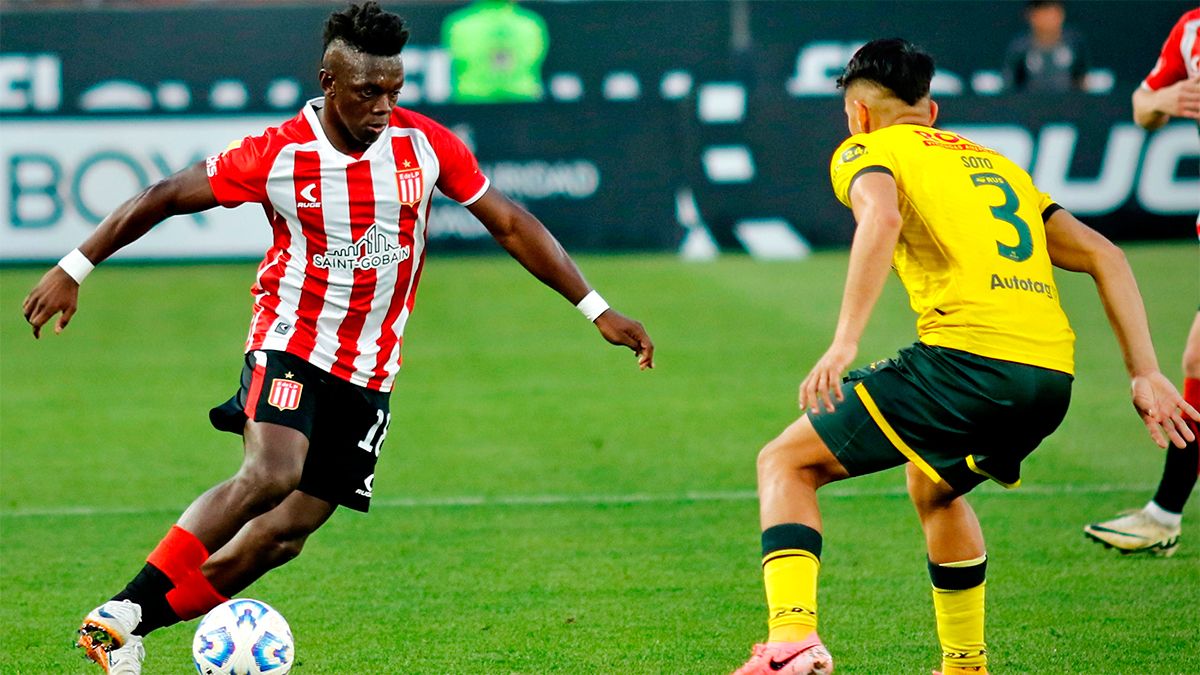 El Pincha volvió a parecerse al equipo que ganó la Copa de la Liga Profesional meses atrás. La primera y única gran jugada de riesgo se dio apenas iniciado el encuentro, cuando una serie de cabezazos en el área terminó con Carrillo definiendo de volea para el 1-0. Sin embargo, el goleador tuvo la oportunidad de ampliar la ventaja desde el punto de penal, pero el arquero Enrique Bologna le adivinó el disparo, manteniendo a Defensa con vida en el partido.