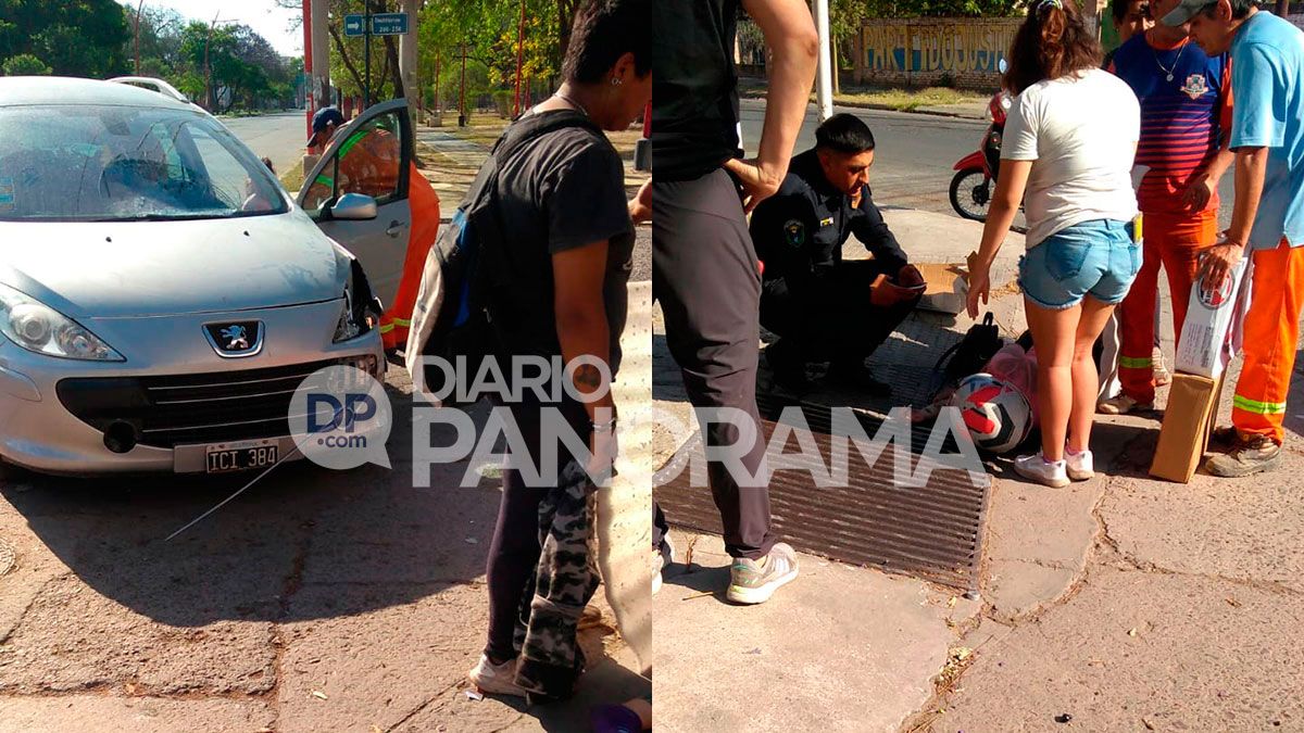 Minutos antes de las 17 horas, se produjo un choque entre un automóvil y una motocicleta en una esquina del barrio Alberdi.