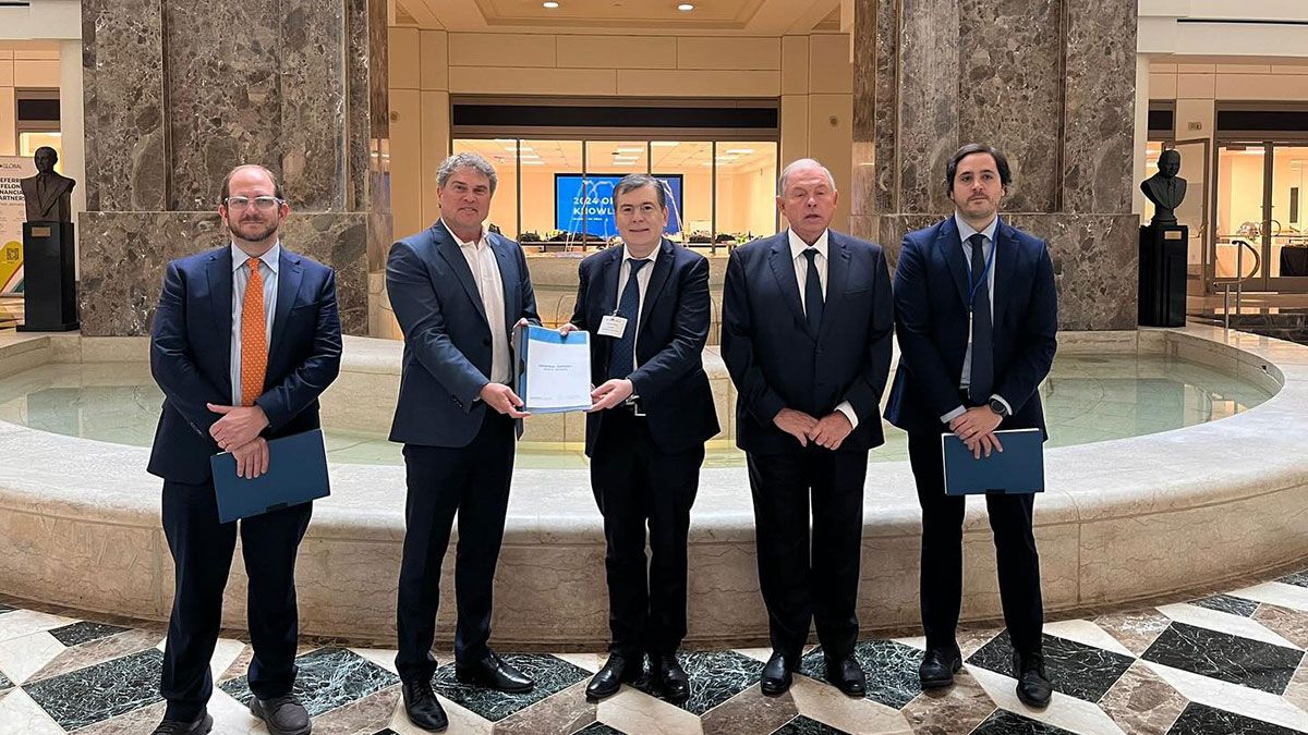 El gobernador de Gerardo Zamora -acompañado por el embajador argentino en Estados Unidos, Gerardo Werthein- se reunió con el gerente General del BID Invest, James Scriven, en el Banco Interamericano de Desarrollo, en Washington.