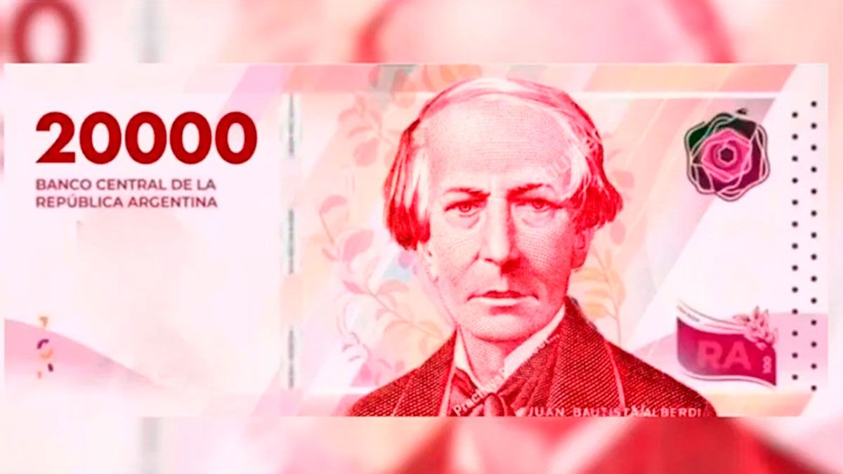El nuevo billete de $20.000 comenzará a circular a finales de octubre de acuerdo a las previsiones que maneja el Banco Central. El papel moneda llevará la cara de Juan Bautista Alberdi, cuyo retrato estará en el anverso. Como ilustración central del reverso estará la recreación de la casa natal del abogado, diplomático, economista, escritor, filósofo, periodista y político.