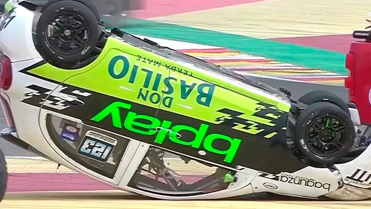 El vuelco ocurrió segundos después de la largada: al doblar en la primera curva, el Ford Fiesta Kinetic de Martínez se tocó con otro auto y terminó dado vuelta fuera de la pista. Afortunadamente, el piloto no sufrió heridas.