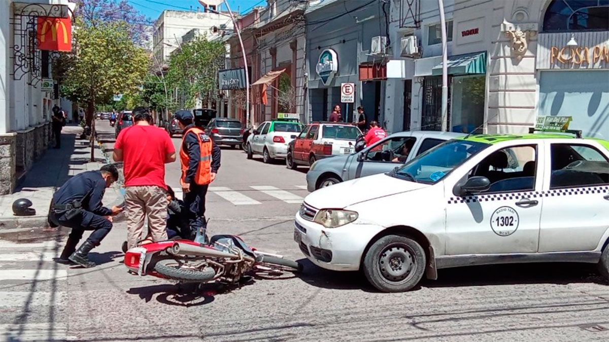 Alrededor de las 14 horas de este viernes, un violento accidente ocurrió en pleno centro santiagueño, en el que una motociclista resultó herida tras un fuerte choque con un remís.