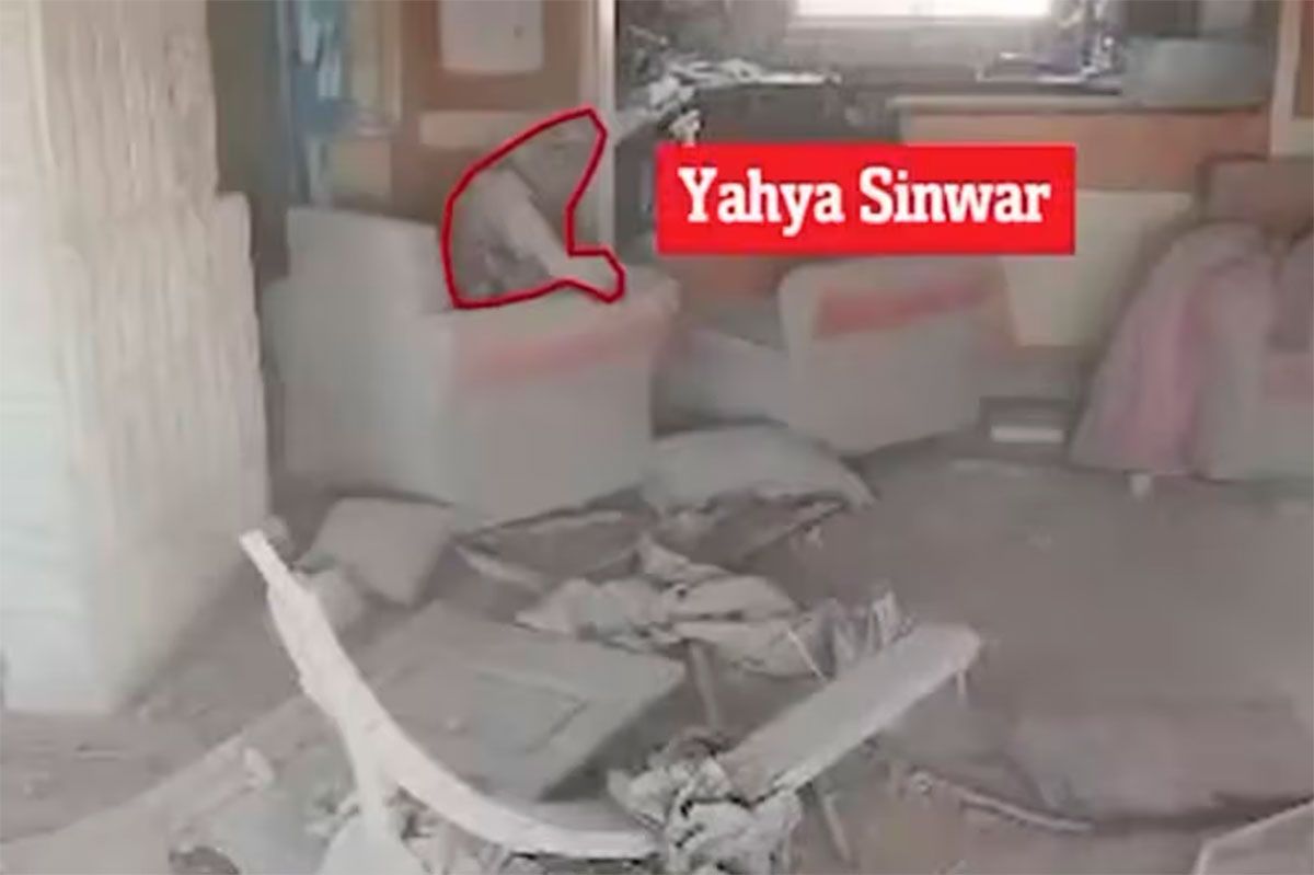 “Imágenes inéditas de los últimos momentos de Yahya Sinwar”, señala la publicación de las FDI con el video en su cuenta de la red social X. El video está hecho con un dron en la casa atacada en Rafah por las FDI en la que estaban tres terroristas, entre ellos Sinwar, herido en el ataque.
