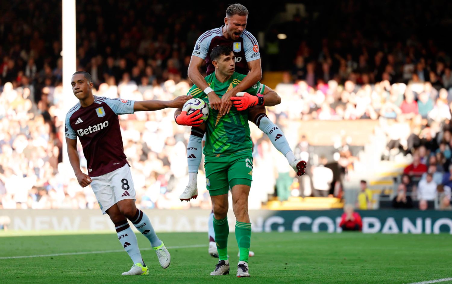 Aston Villa se impuso 3-1 a Fulham en un partido clave para sus aspiraciones de mantenerse en zona de clasificación a la Champions League. El arquero argentino Emiliano "Dibu" Martínez fue fundamental en la victoria, al atajar un penal cuando el encuentro estaba igualado 1-1, lo que permitió a su equipo revertir el marcador y llevarse los tres puntos en Craven Cottage.