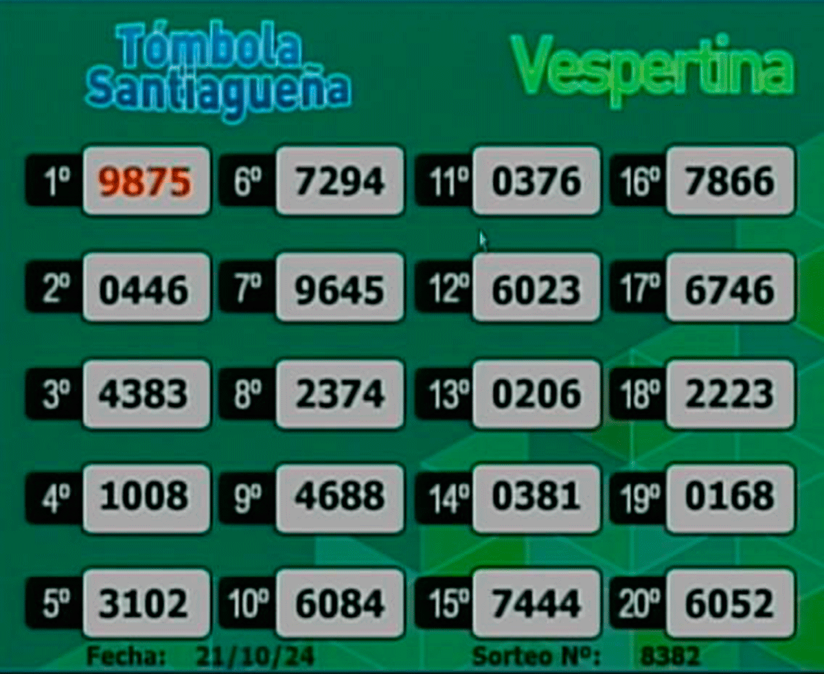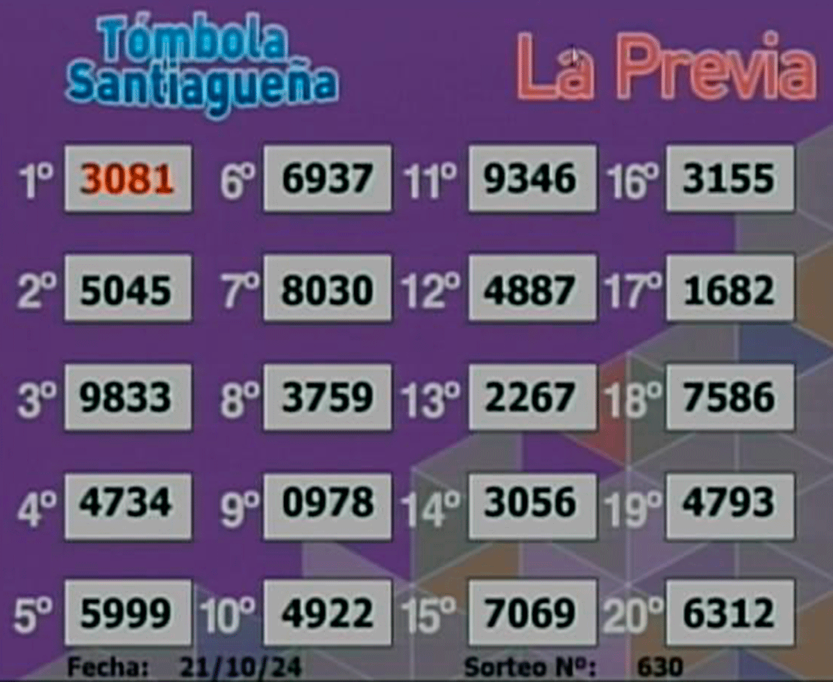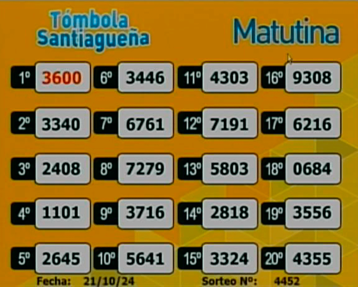 Este lunes 21 de octubre del 2024, como todos los días, se llevó a cabo un nuevo sorteo de la Tómbola Santiagueña.
