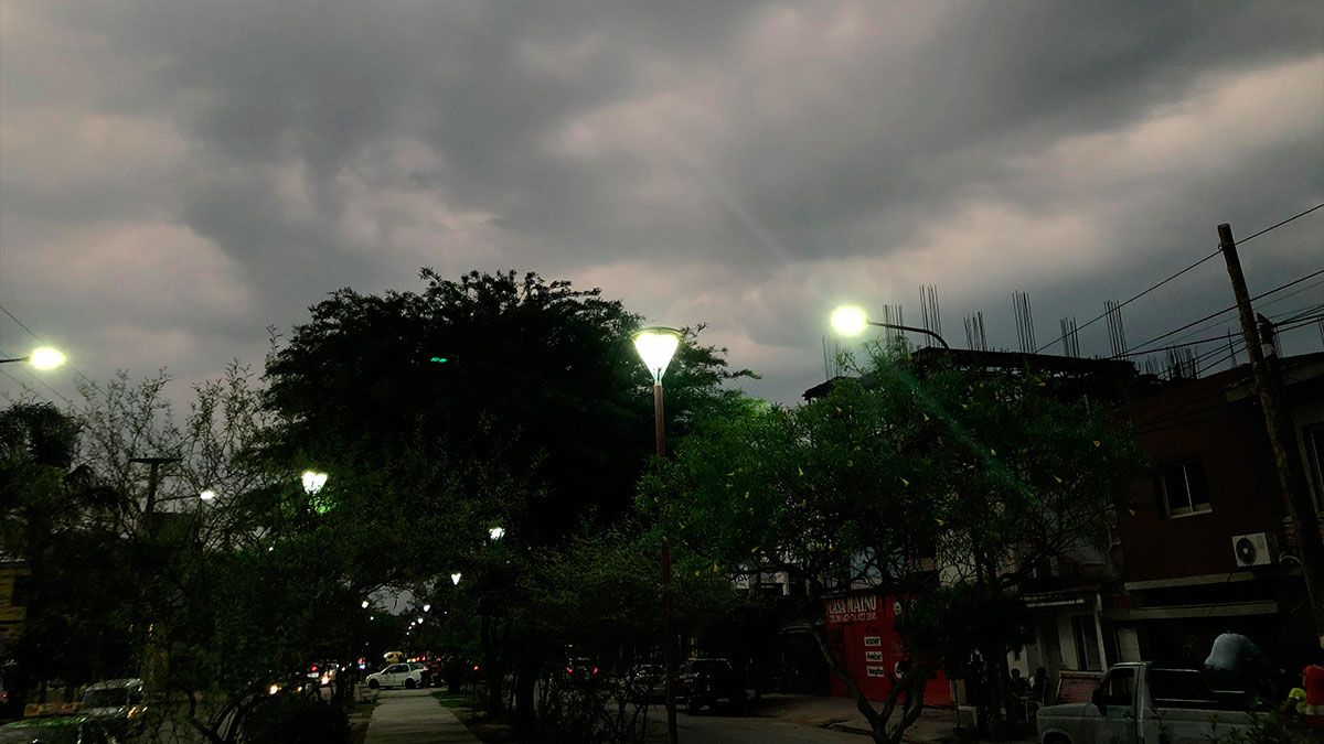 En horas de la tarde, el cielo comenzó a nublarse. Cerca de las 19 horas, la lluvia empezó a caer de manera constante, logrando un leve descenso en la temperatura.