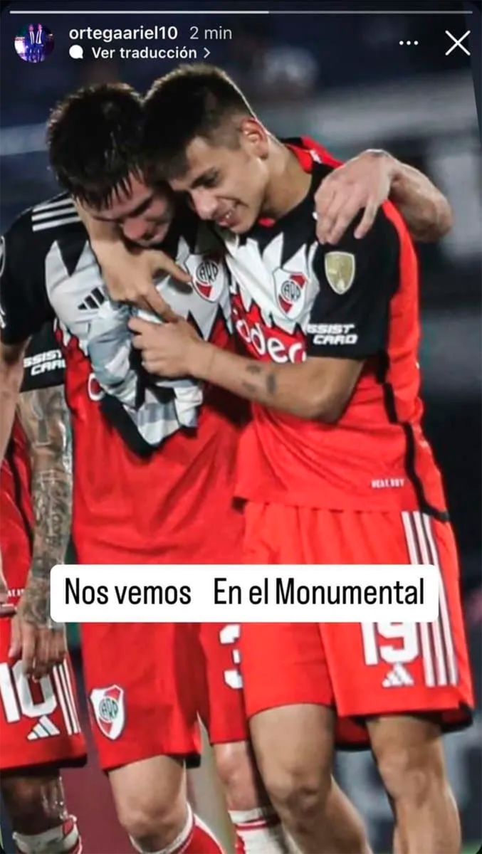 "Nos vemos en el Monumental", escribió el jujeño, acompañada de una foto de las dos joyas más brillantes de River luego del agónico triunfo en Paraguay contra Libertad, gracias a un gol del pibe nacido en Azul y pretendido por Milan y Real Madrid.