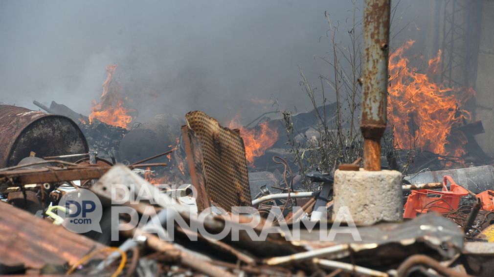 El fuego se extendió de la chatarrería a una zona montuosa vecina.