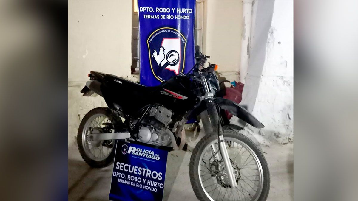 Tras la denuncia penal radicada en la comisaría Comunitaria 40 de Las Termas de Río Hondo por parte de Armando Ariel Juárez, quien indicó que desconocidos le habían sustraído una moto Honda Tornado dominio A-065-IGB desde su vivienda.