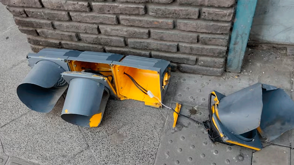 Luego del operativo realizado en el lugar, la mujer regresó a su domicilio. En tanto, el personal policial secuestró el semáforo que se desprendió. En las imágenes que fueron capturadas posterior al hecho, se observa el dispositivo dañado sobre el asfalto tras la caída.