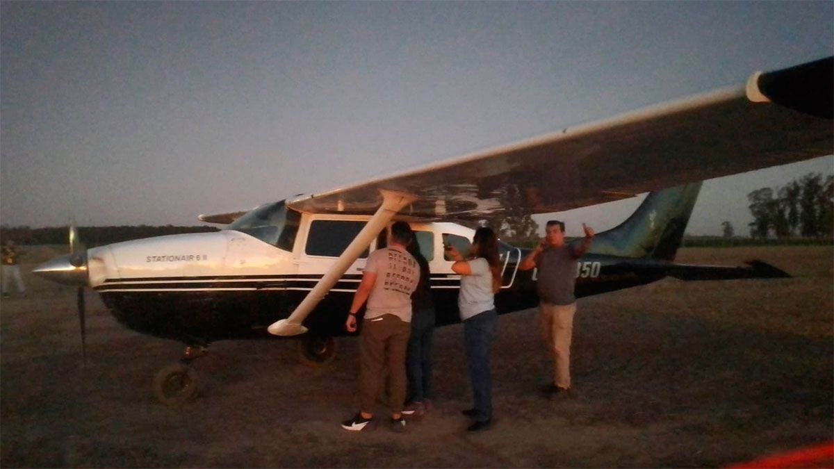 La aeronave, un Cessna Stationair, aterrizó en un campo a unos 25 kilómetros de Rosario, cerca de la ruta 34.