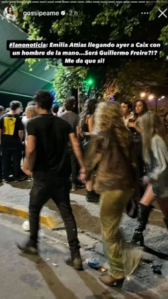 “Emilia Attias llegando ayer a Caix con un hombre de la mano. ¿Será Guillermo Freire? ¡Me da que sí!”, escribió Pochi en una foto que subió a Instagram Stories donde se ve una mujer de espaldas (que sería Emilia) de la mano de un hombre.
