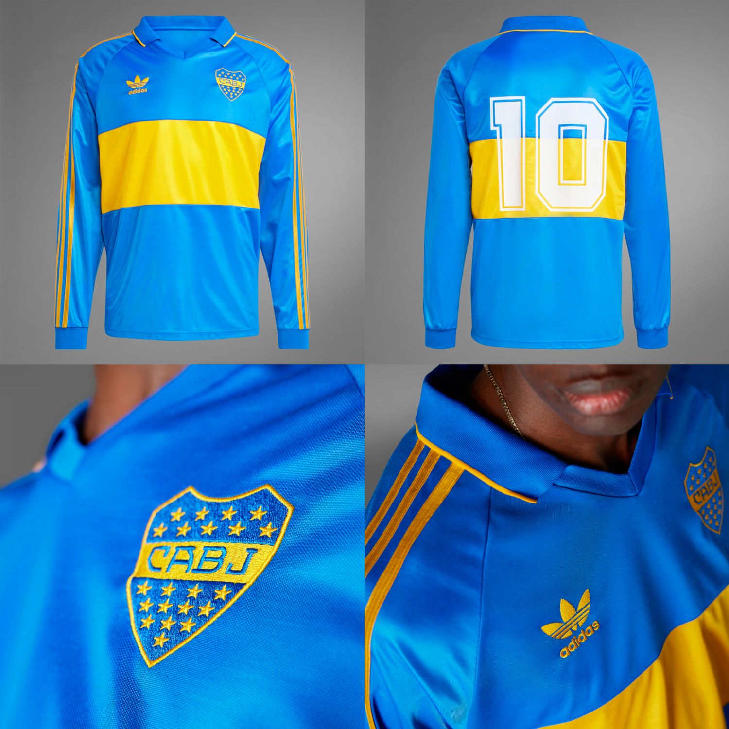 En el caso de Boca, se retoman los colores azul y amarillo clásicos, con detalles en el diseño que remiten a una de las épocas doradas del club.