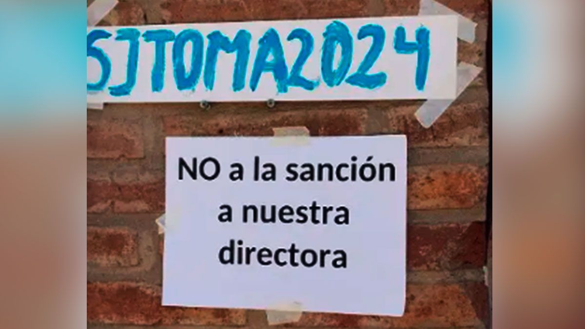 En esta misma línea, uno de los carteles que estaban adheridos a la pared de la institución, subrayó: “Somos estudiantes, no clientes”. “Sanjo tomado por justicia por la directora”, indicó otro de los pedidos de los manifestantes.