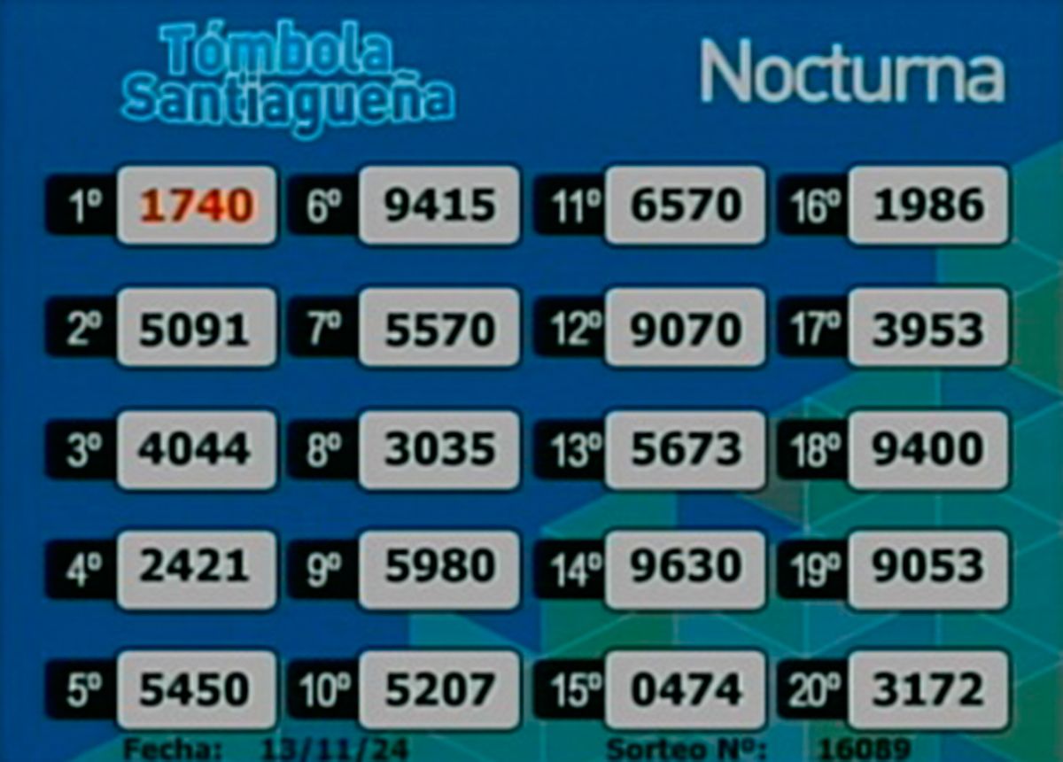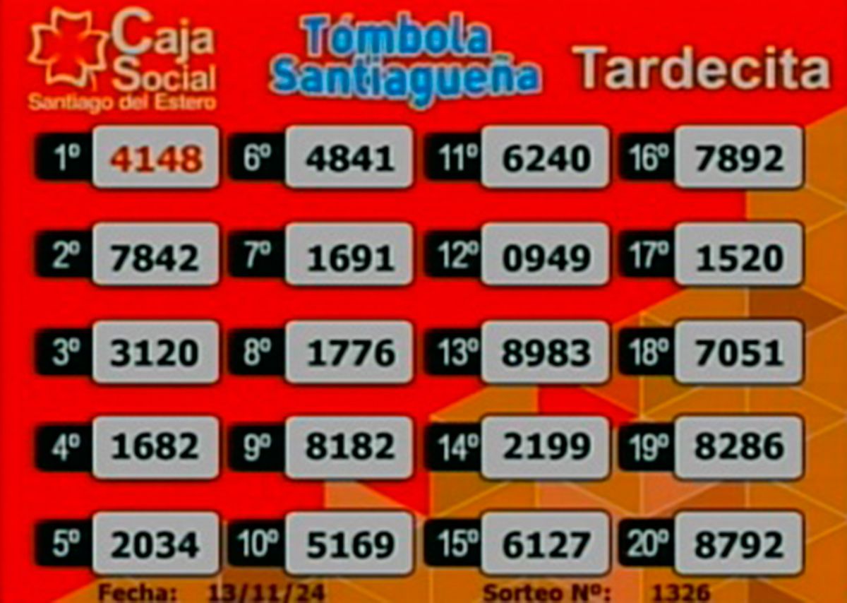 Este miércoles 13 de noviembre del 2024, como todos los días, se llevó a cabo un nuevo sorteo de la Tómbola Santiagueña.