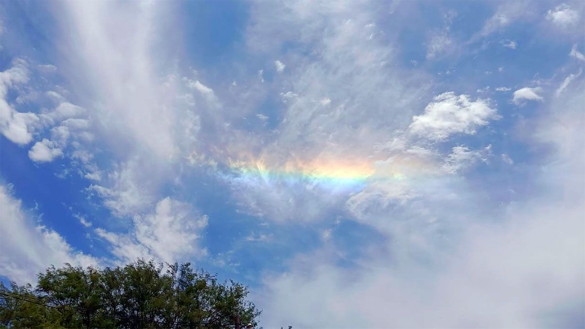 Alrededor del mediodía de este jueves, un halo solar y una nube iridiscente colorearon el cielo santiagueño acaparando la atención de muchos transeúntes.