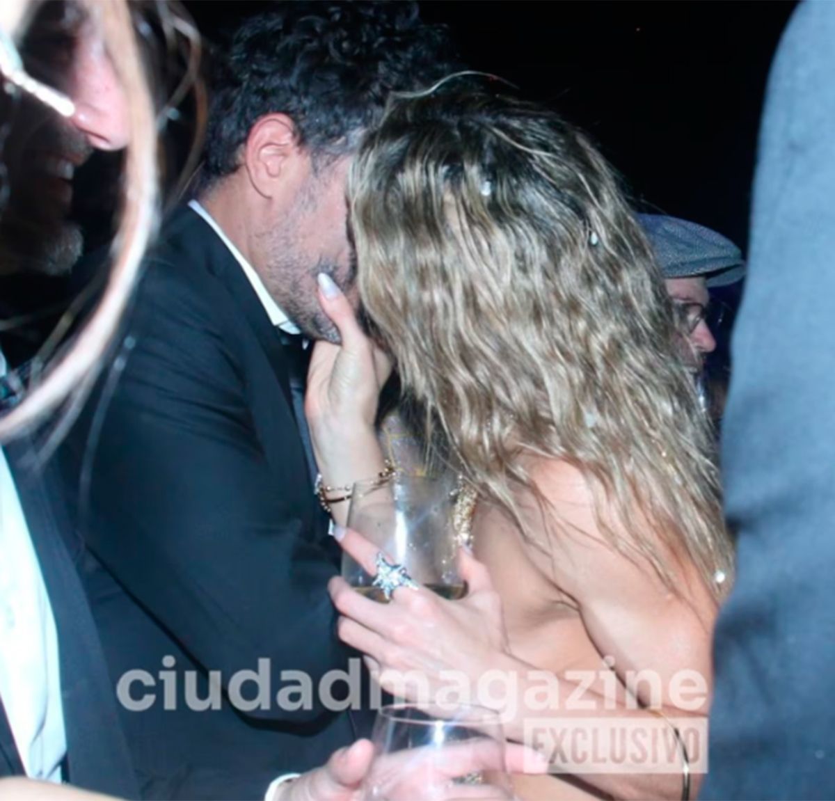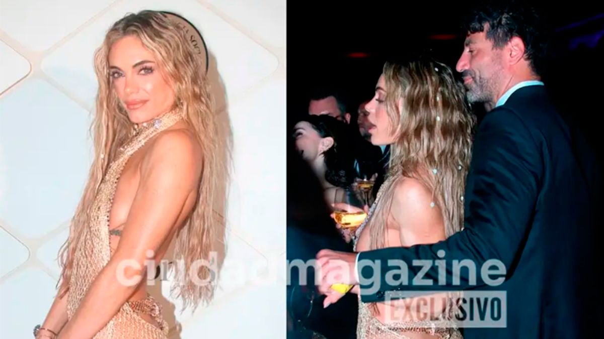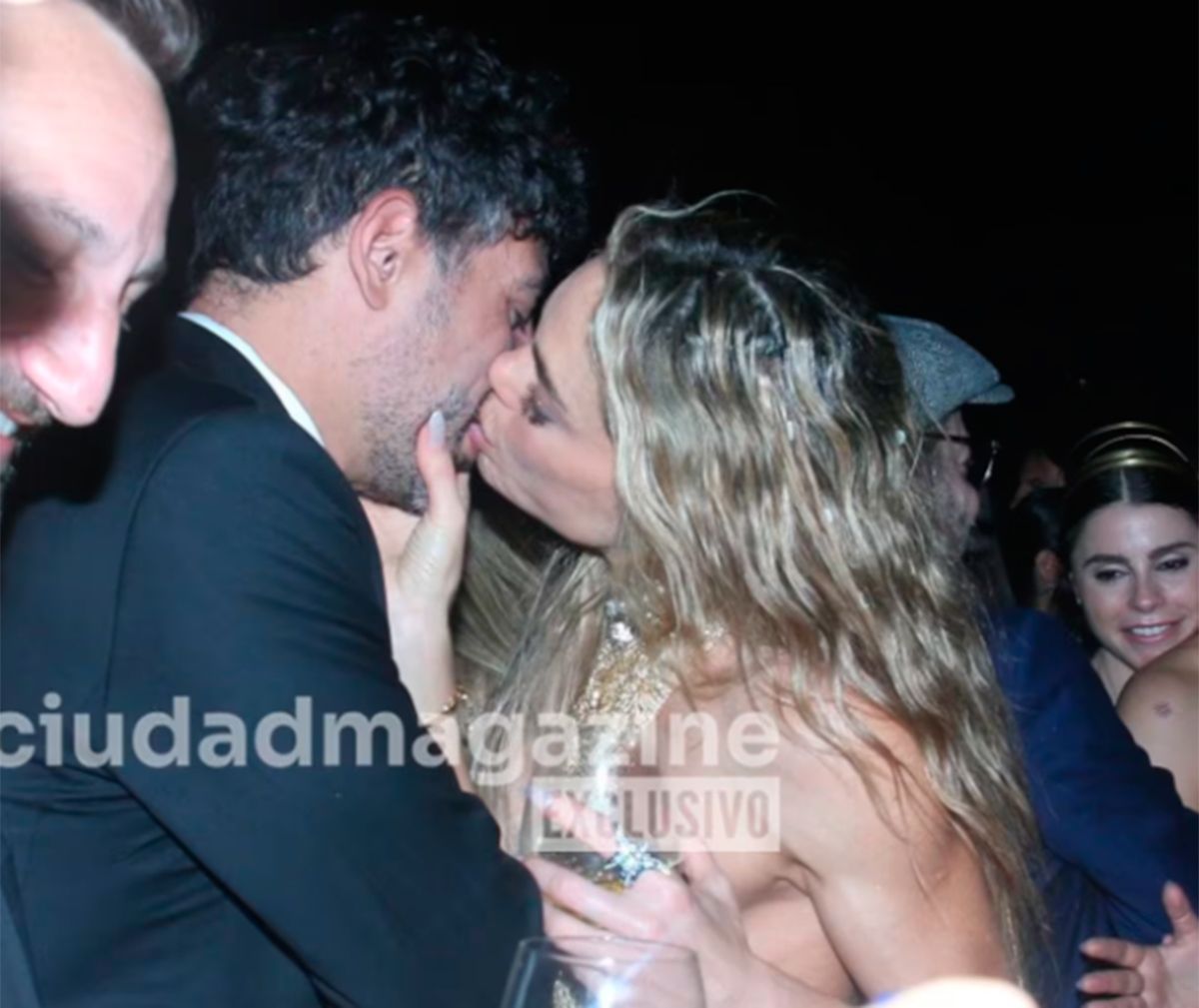 Luciendo un look de prendas únicamente doradas y con transparencias, Emilia Attias se mostró a los besos con su nuevo novio, Guillermo Freire, en un exclusivo evento.