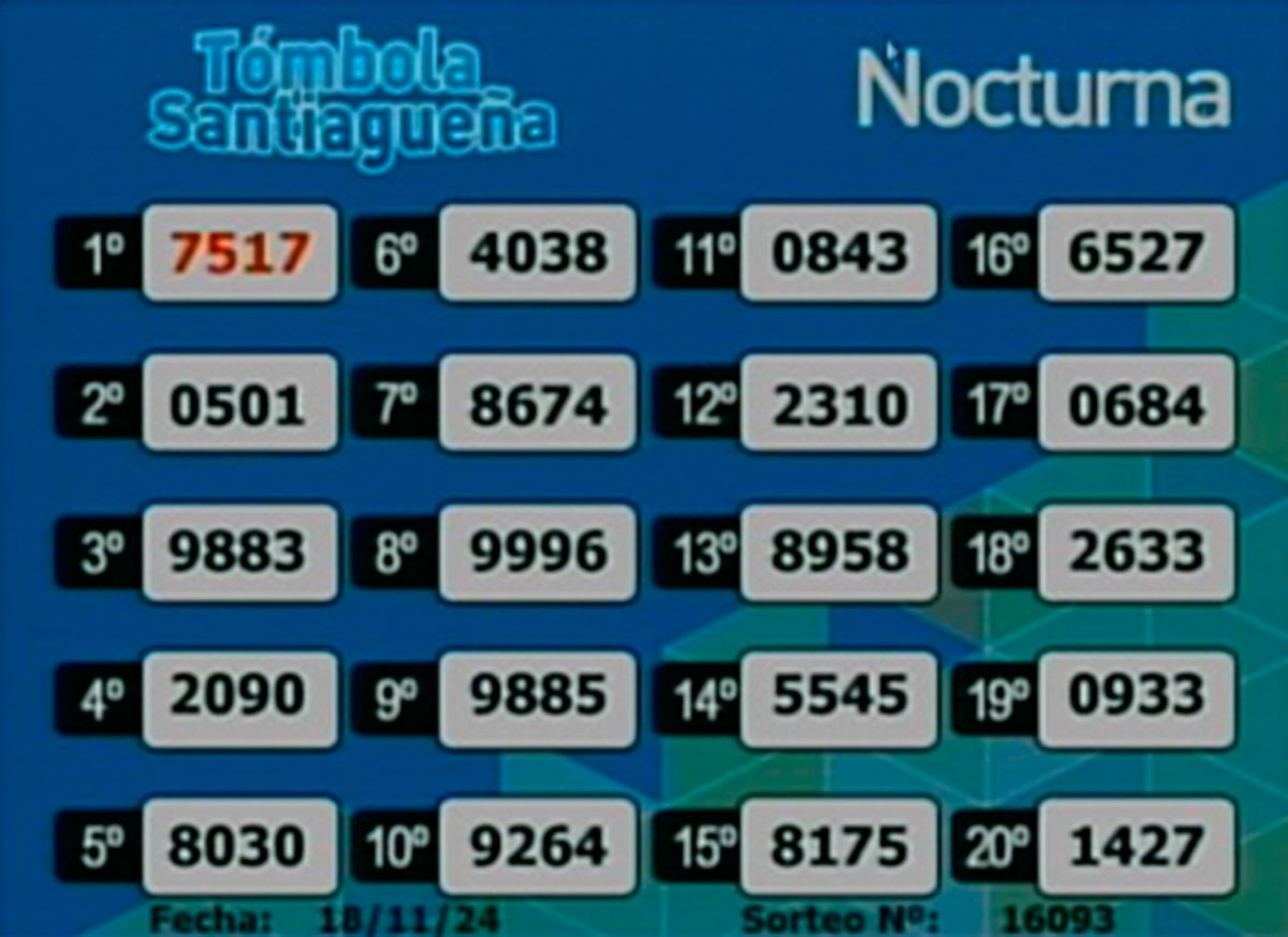 Este lunes 18 de noviembre del 2024, como todos los días, se llevó a cabo un nuevo sorteo de la Tómbola Santiagueña.