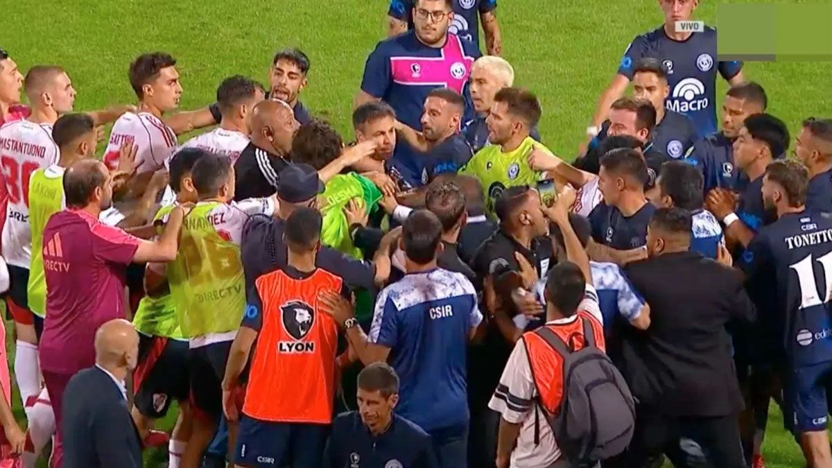River cayó sobre la hora ante Independiente Rivadavia y el encuentro terminó de manera bochornosa luego de que una cargada de Sebastián Villa desatara la ira del plantel Millonario, lo que provocó una gran pelea entre los planteles donde volaron golpes de puño y hubo corridas adentro y afuera del campo de juego.
