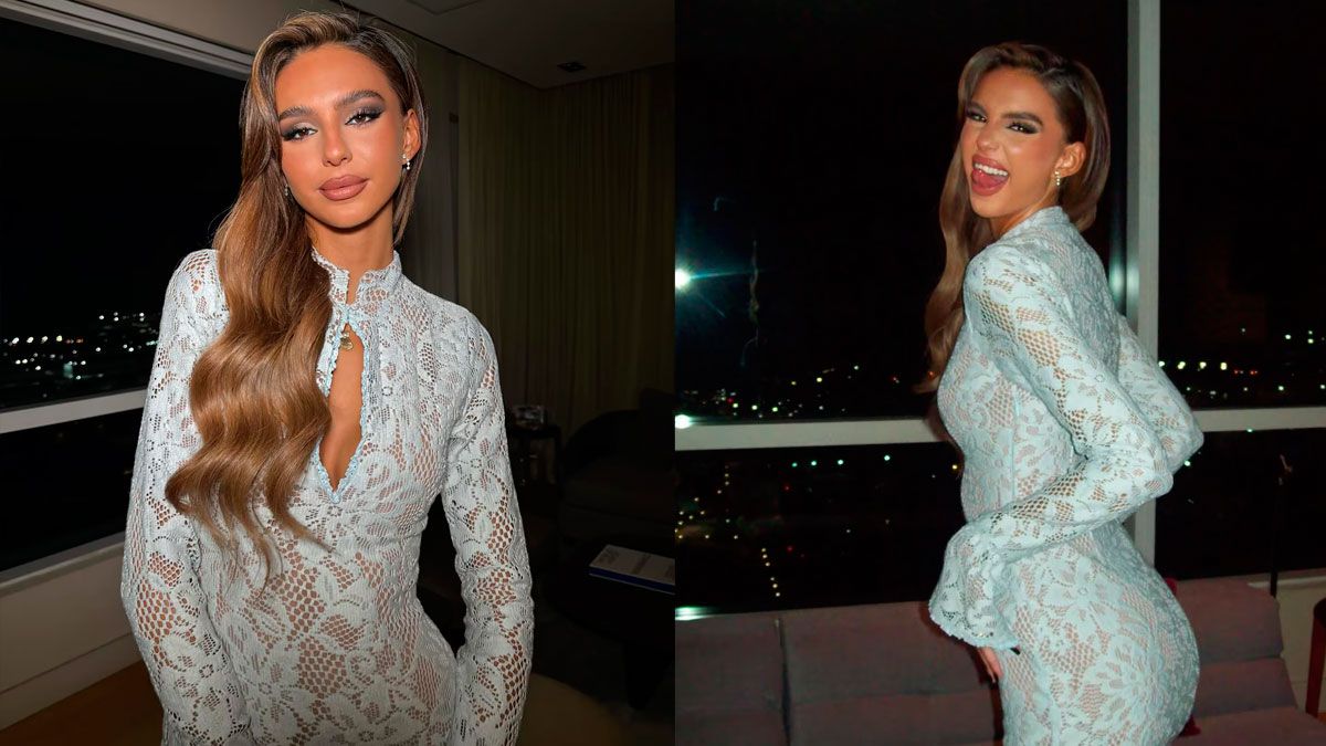 La estrella de la noche, además de la homenajeada, fue el vestido que Juanita eligió para la ocasión. Un diseño corto, ceñido y confeccionado en delicado encaje blanco con motivos florales, que parecía fusionar lo romántico con lo contemporáneo. Las mangas largas y acampanadas ofrecían un aire etéreo, mientras que la transparencia del encaje en los brazos creaba un juego de luces sutil y sofisticado.