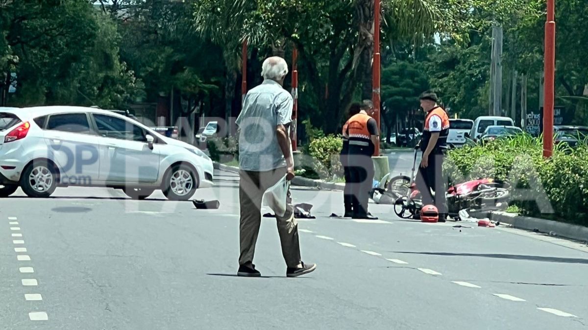 La calma del domingo se vio alterada cuando, minutos después del mediodía, un auto y una moto protagonizaron un violento choque en la zona sur de la Capital.