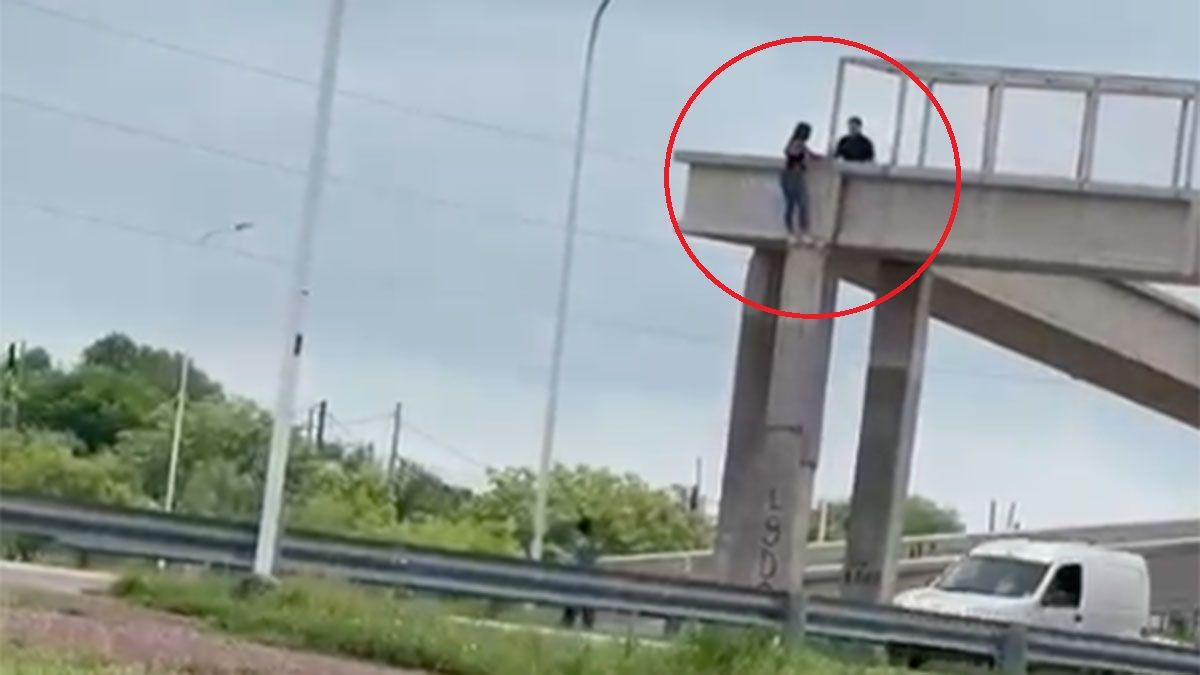 Testigos relataron que la mujer se encontraba visiblemente alterada y gritaba su intención de lanzarse al vacío. En un video enviado al WhatsApp de las Noticias, se observa cómo la joven se para en el borde del puente y realiza un gesto de tirarse, cuando un efectivo policial logra detenerla justo a tiempo.