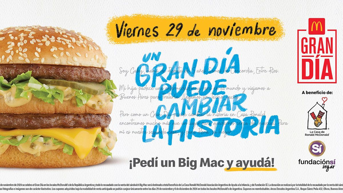 El 29 de noviembre vuelve el Gran Día, la jornada solidaria más importante del año para McDonald's, donde el 100% de lo recaudado por la venta del Big Mac en todo el país será donado a Fundación Sí y a Casa Ronald.