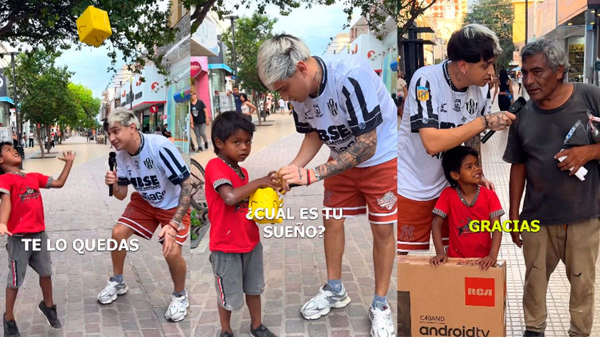 Con su carisma característico, Valentín paseó por el centro de la ciudad con una caja sorpresa en la mano. En su video viral, se lo ve lanzando la caja al aire mientras exclama: “¡Si la agarrás, te la quedás!”. Un niño, con precisión y entusiasmo, atrapó el misterioso paquete que contenía una pregunta mágica: "¿Cuál es tu sueño?".