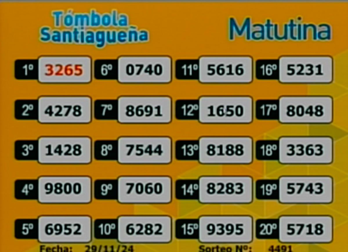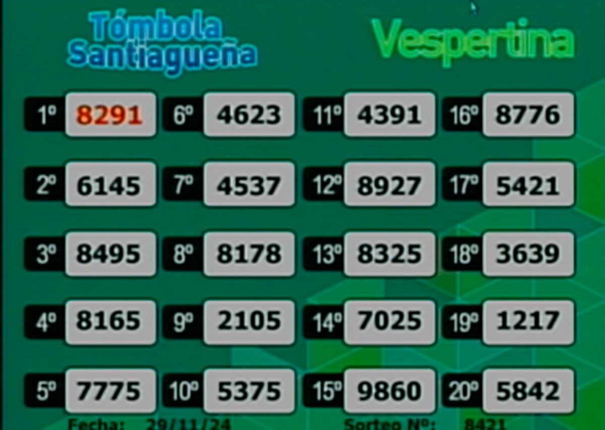 Este viernes 29 de noviembre del 2024, como todos los días, se llevó a cabo un nuevo sorteo de la Tómbola Santiagueña.